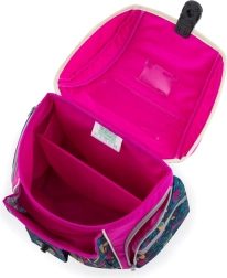 Išmani vidinė sandara su skyrikliu, didelė pagrindinė erdvė ir gausybė kišenių leidžia mokyklines priemones laikyti tvarkingai ir aiškiai. Paprastas magnetinis užsegimas palengvina kasdienį naudojimą. Rinkinį papildo praktiškas maišelis kūno kultūrai / šlepetėms su virvelėmis užveržiamu užsegimu ir vieno aukšto penalas su dviem atvartais (be užpildo) su guminėmis kilpelėmis ir permatoma plėvele tvarkaraščiui.
