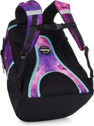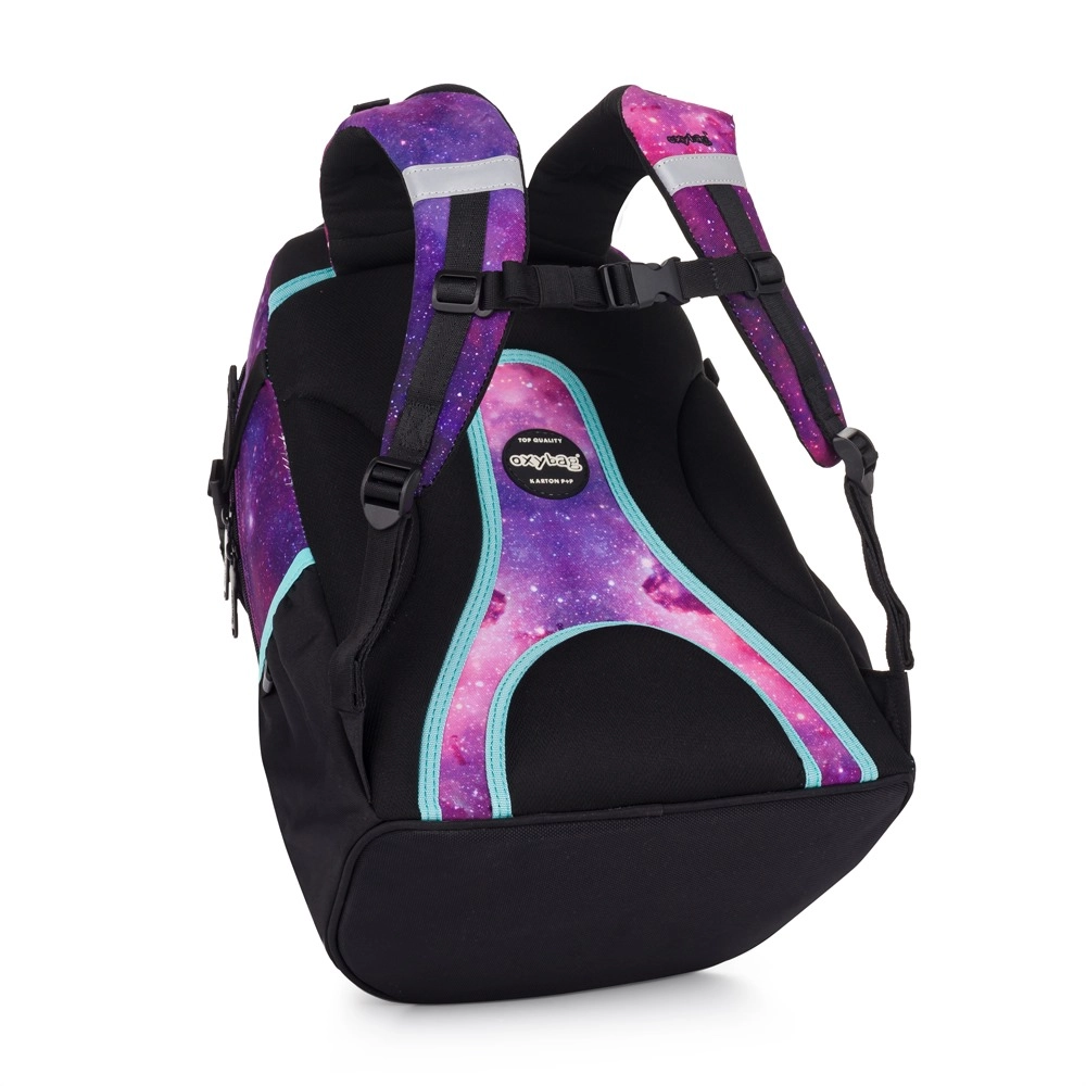 Atraskite šiuolaikišką mokyklinę kuprinę Oxy Ombre Galaxy su patraukliu kosminiu dizainu violetiniuose ir rožiniuose atspalviuose. Kuprinė sukurta vaikams nuo 136 cm ūgio ir siūlo subalansuotą komforto, patvarumo ir praktiškumo derinį kasdieniam ėjimui į mokyklą.