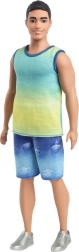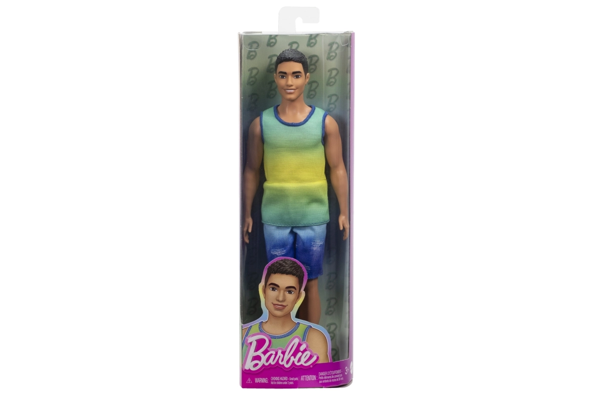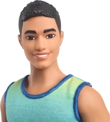 Ken lėlė čia yra platesnės figūros, apsirengusi ombré viršumi, pereinančiu iš mėlynos į žalią – idealiu visoms asmenybėms ir progoms. Nuzulinti džinsiniai šortai ir sidabriniai sportiniai bateliai papildo universalų ir rafinuotą įvaizdį – tiek susitikimams su draugais, tiek pramogoms paplūdimyje.