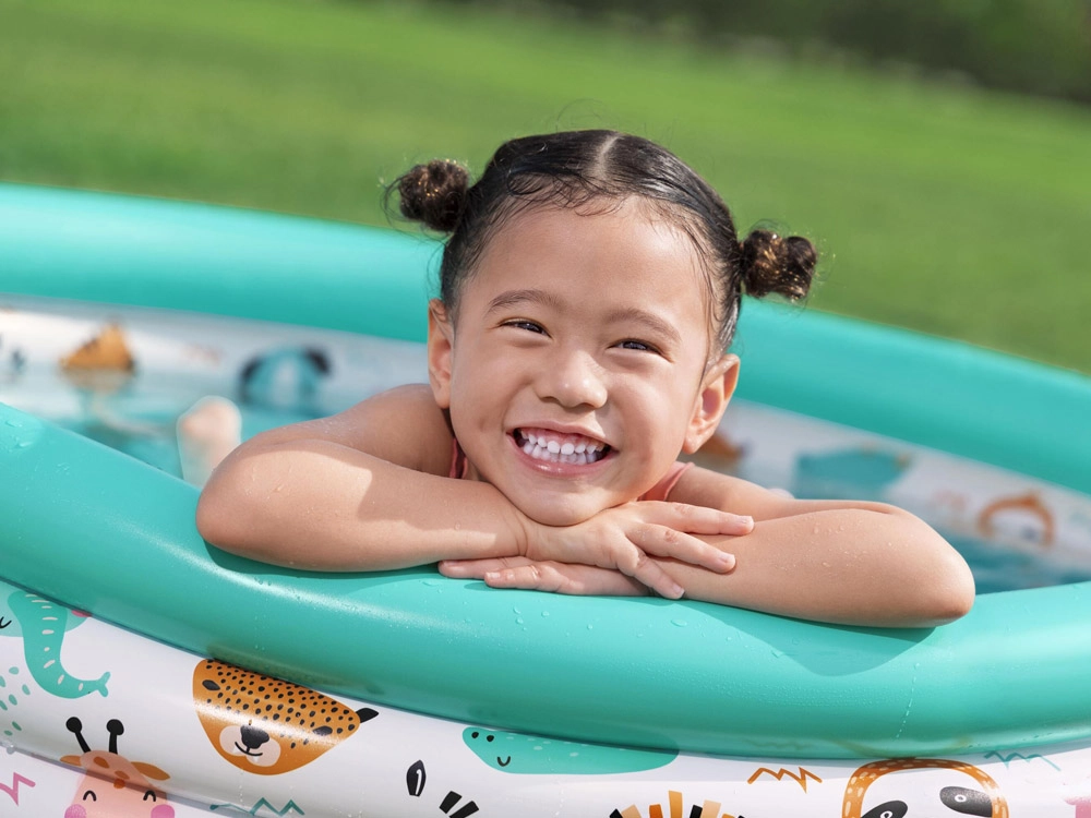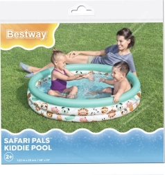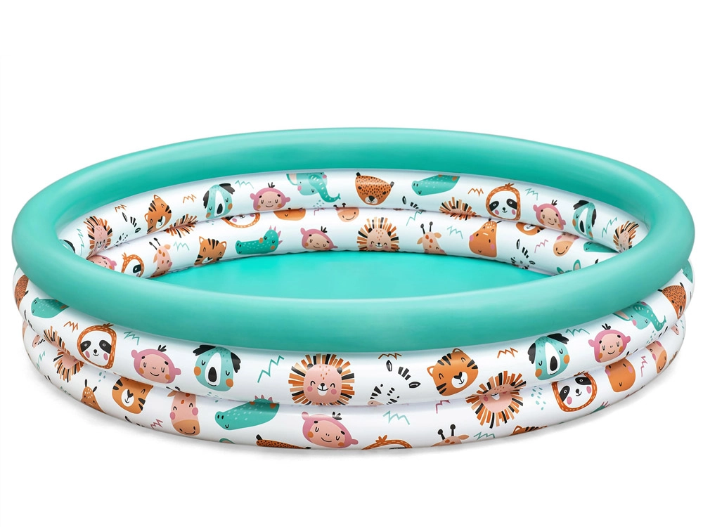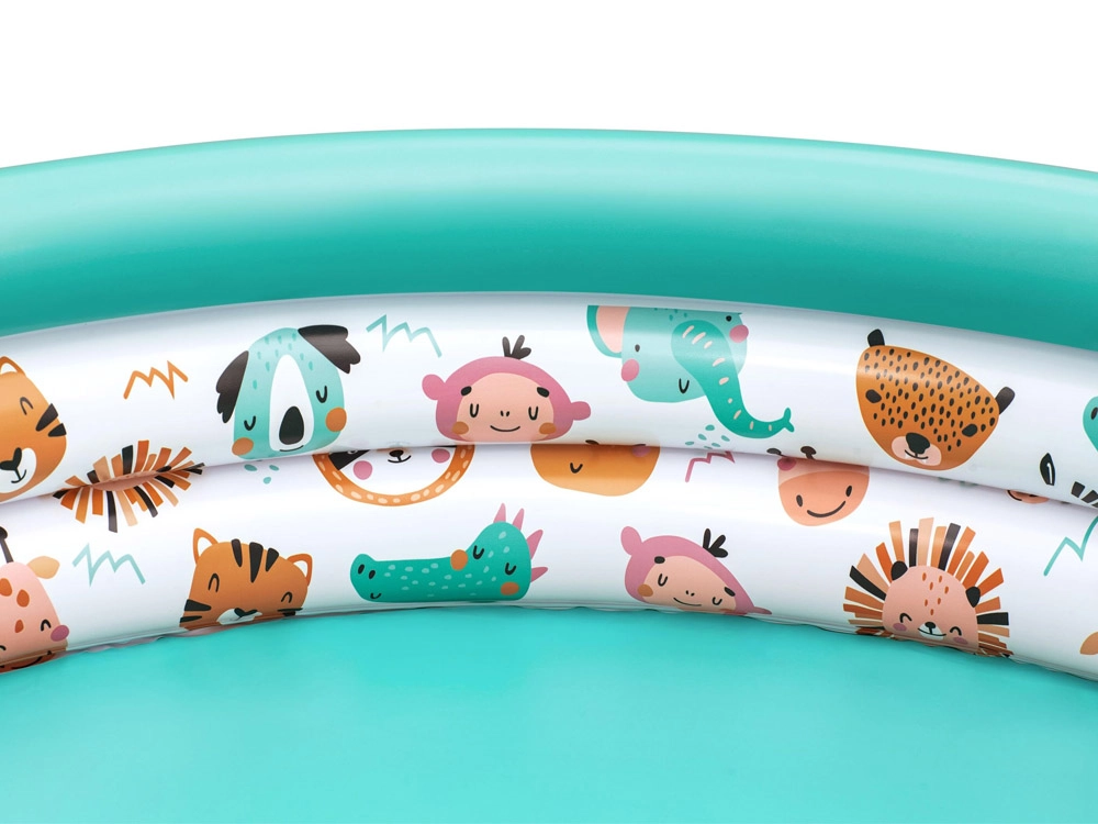 Vaikiškas pripučiamas baseinas Safari gyvūnėliai, prekės ženklo Bestway, pagamintas iš aukštos kokybės ir patvaraus PVC, kuris garantuoja ilgą tarnavimo laiką ir atsparumą pažeidimams. Trys pripučiami žiedai suteikia stabilumo ir patogumo žaidžiant. Minkštos sienelės užtikrina komfortą ir saugumą jūsų vaiko vandens pramogų metu.