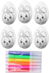 - 6 polistireniniai kiaušinėliai, 6 flomasteriai