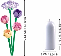 Konstruktorius suderinamas su LEGO, COBI ir Mega Bloks, tad lengvai išplėsite jį kitais savo kolekcijos elementais. Dėl realistiškų proporcijų baigta puokštė puikiai atrodo vazoje namuose ar biure.