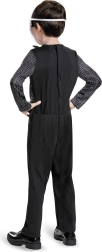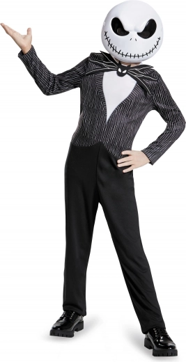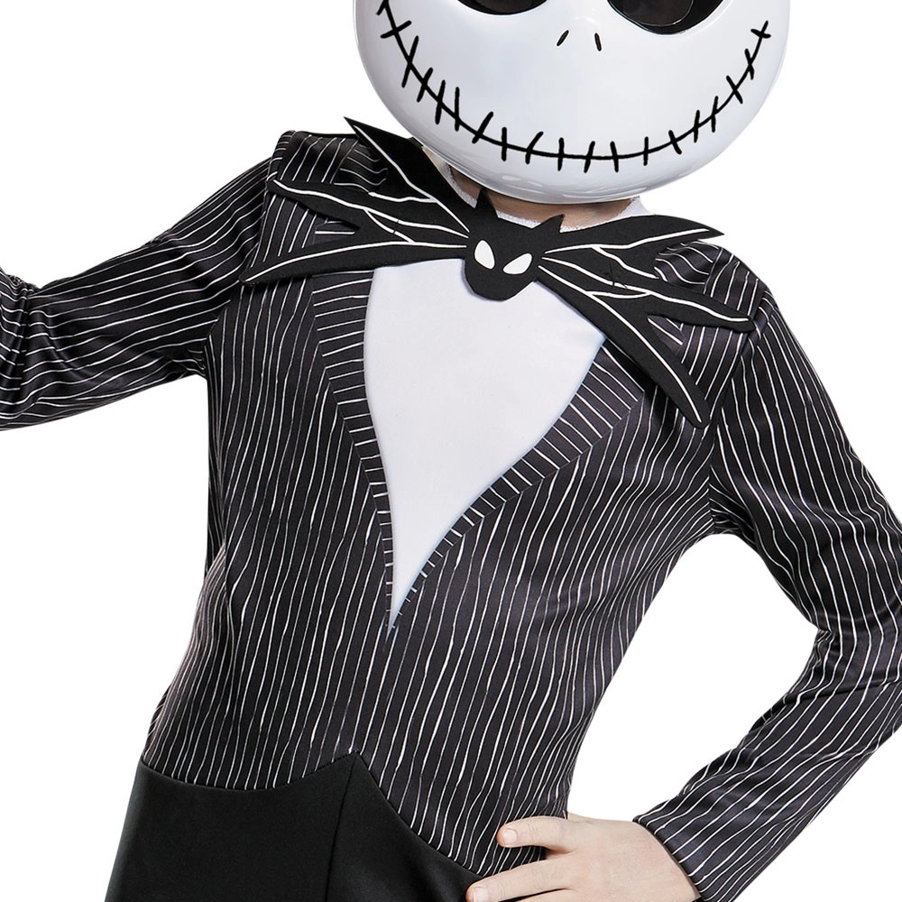 Šis vaikiškas Jacko Skelingtono kostiumas pavers mažą gerbėją Helovino miestelio karaliumi. Kokybiškas juodas kombinezonas su baltais dryžiais atkuria elegantišką Džeko kostiumą, ikoniška šikšnosparnio formos varlytė suteikia charakterio, o kaukė su siūtu šypsniu užbaigia tobulą įvaizdį.