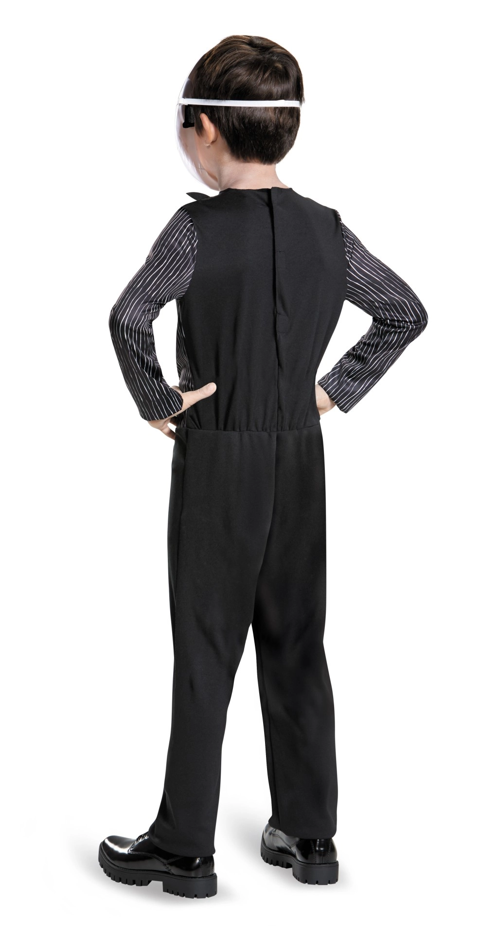 Juodas kostiumas su baltais dryžiais ir ikoniška šikšnosparnio formos varlytė ištikimai atkuria filmą NIGHTMARE BEFORE CHRISTMAS.