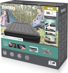 Patogus dvigulis Bestway čiužinys, 152 × 203 × 36 cm, užtikrina greitą pripūtimą su integruotu USB siurbliu per 5–6 minutes, stabilią tritech konstrukciją, atsparią išsiplėtimui, integruotą pagalvę didesniam komfortui ir maks. apkrovą 300 kg. Puikiai tinka namuose ir stovyklaujant.