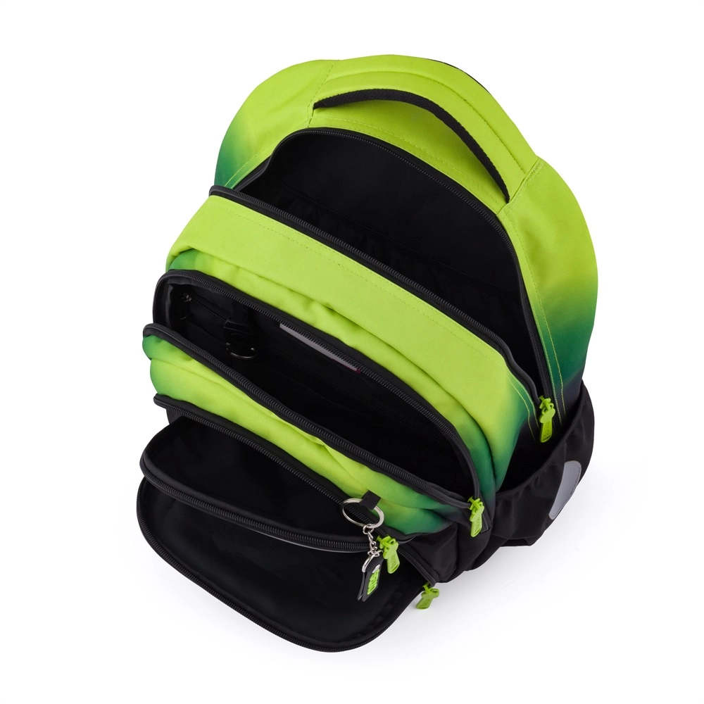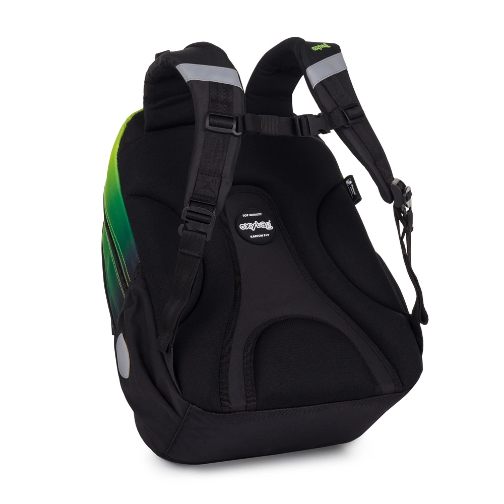 OXY NEXT Ombre – apgalvota mokyklinė kuprinė, derinanti komfortą, saugumą ir praktišką vidaus išdėstymą. Dėl ergonominio nugaros skydelio (42 cm) ir paminkštintų, reguliuojamų pečių petnešų su krūtinės dirželiu ją patogu nešioti net ir pilnai prikrautą. Atšvaitiniai elementai aplink kuprinę pagerina vaikų matomumą prieblandoje ir prastomis oro sąlygomis.