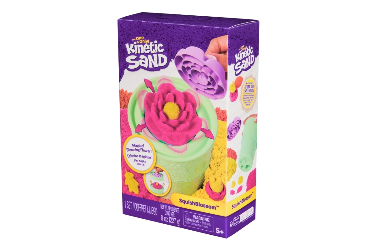 Praskleiskite savo kūrybiškumą su Kinetic Sand SquishBlossom rinkiniu. Jame yra 240 g neoninės rožinės ir geltonos spalvos smėlio, gėlės forma ir vazonėlis su papildomomis formelėmis. Vaikai gali magiškai „pražydinti“ žiedą spausdami į minkštą pagrindą ir formuoti rožes, bites bei lapus. Kinetinis smėlis nelimpa prie rankų, niekada neišdžiūsta ir puikiai laiko formą – idealu sensoriniam žaidimui, smulkiajai motorikai ir kūrybiškumui.