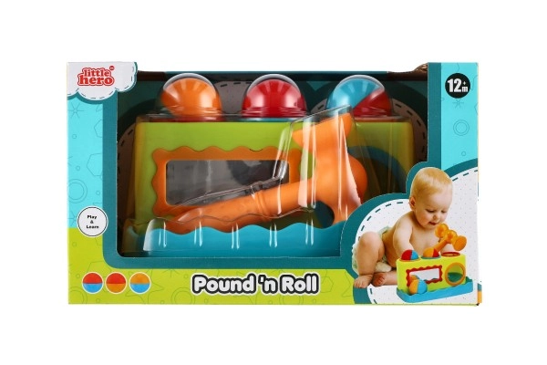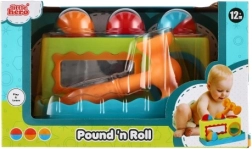 Spalvingas vazdeliojimo žaislas patiems mažiausiems lavina smulkiąją motoriką, rankos–akies koordinaciją ir natūralų smalsumą. Vaikai su lengvu plaktuku įkalinėja tris spalvingus kamuoliukus į angas ir stebi, kaip jie įkrenta. Priekinis veidrodėlis suteikia žaidybinį efektą, skatina kartoti veiksmus ir padeda formuoti savęs suvokimą. Ideali pirmoji didaktinė priemonė nuo 12 mėn.