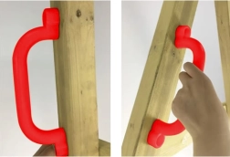 Pakuotėje rasite 10 laikiklių, 2 ergonomines rankenas ir pilną montavimo rinkinį – idealiai tinka vidaus ir lauko žaidimų konstrukcijoms.