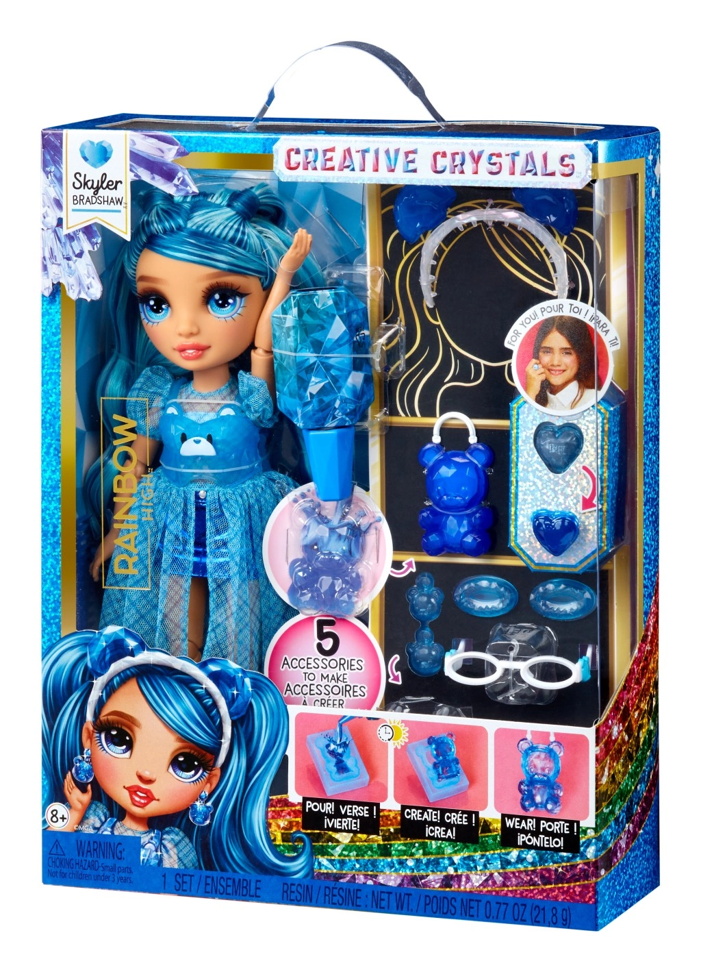 Pristatome mėlynaplaukę žvaigždę iš RAINBOW HIGH serijos – Skyler Bradshaw, Creative Crystals leidime. Rinkinyje rasi viską, ko reikia kristalinių aksesuarų iš dervos kūrimui su formelėmis, o taip pat galėsi pasigaminti žiedą sau. Lėlė turi lankstomus sąnarius, šukuojamus plaukus ir stilingą aprangą begalinėms mados kombinacijoms. Puiki dovana kūrybingiems vaikams nuo 3 metų.