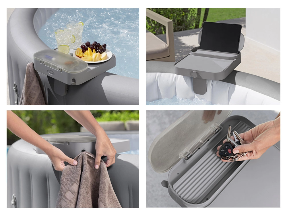Praktiška Bestway 4‑i‑1 lentynėlė pavers jūsų sūkurinę vonią dar patogesne poilsio vieta. Išmanus padėklo išdėstymas ir uždara daiktadėžė viską išlaiko sausa ir pasiekiama – nuo gėrimų ir užkandžių iki raktų ar telefono. Tvirtas fiksavimo mechanizmas su tolygiu priveržimu užtikrina patikimą laikymąsi be klibėjimo.