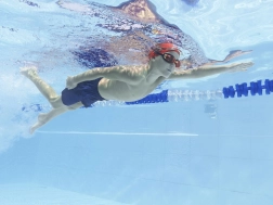 Ryškus dvispalvis dizainas didina vaiko matomumą baseine ir suteikia stiliaus kiekvienos treniruotės metu.