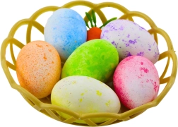 Šis gražus velykinis rinkinys, sudarytas iš spalvotų kiaušinėlių su subtiliomis dėmelėmis ir stilingos plastikinės morkos, patalpintų plastikiniame krepšelyje su kruopščiai apgalvotu dizainu, puikiai tinka pavasario nuotaikai sukurti. Kiaušinėliai pagaminti iš lengvo ir patvaraus polistireno, o plastikinis krepšelis užtikrina stabilumą ir lengvą priežiūrą.