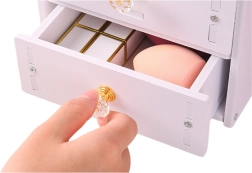 Elegantiška mini tualetka idealiai tinka tiek mažoms, tiek didesnėms erdvėms. Dėl 360° pasukamo veidrodžio lengvai nustatysite idealų kampą kruopščiam makiažui ir odos priežiūrai. Kompaktiški matmenys taupo vietą, o praktiškas stalčiukas padeda patogiai laikyti kosmetiką, papuošalus ir smulkmenas po ranka.