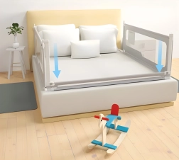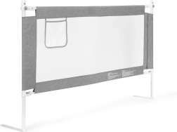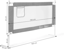 Saugos lovos apsauga, kurios plotis 150 cm iš ECOTOYS, apsaugo vaikus nuo kritimo ir leidžia tėvams patogiai miegoti kartu. Ji siūlo reguliuojamą aukštį, nuleidžiamą viršutinę juostą patogiam priėjimui, kvėpuojantį tinklelį ir praktinę kišenę smulkmenoms. Universali montavimo sistema, galimybė sujungti kelias apsaugas ir tvirta plieninė konstrukcija užtikrina ilgaamžiškumą ir maksimalų saugumą.
