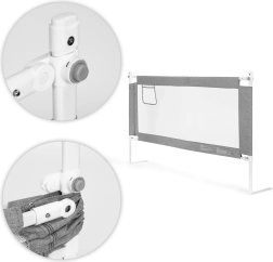 Universali tvirtinimo sistema palengvina montavimą ant įvairių lovų tipų, o galimybė sujungti kelis skydelius sukuria apsaugotą erdvę aplink lovą. Patvari plieno, PP ir kokybiško audinio kombinacija garantuoja stabilumą ir lengvą priežiūrą – užvalkalą galima nuimti ir išskalbti.