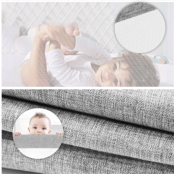Viršutinę užtvaros dalį galima lengvai nuleisti paspaudus mygtuką, todėl į lovą pateksite be išardymo. Nusegamas užvalkalas gali būti skalbiamas ir lengvai prižiūrimas. Integruota kišenė talpina čiulptuką, servetėles ar smulkius žaislus – viskas visada po ranka.