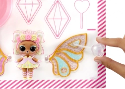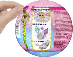 L.O.L. Surprise pristato visiškai naują žaidimo ir kūrybos būdą. Sumaišyk spalvotą „fėjų pudrą“ su vandeniu, užpildyk sparnų šabloną ir, kai išdžius, pritvirtink prie lėlytės. Dėl stebuklingų sparnų ir žvilgančių efektų sukursi originalų dizainą, su kuriuo tavo fėja išsiskirs. Kamuolys taip pat tarnauja kaip stilingas stovelis eksponavimui.