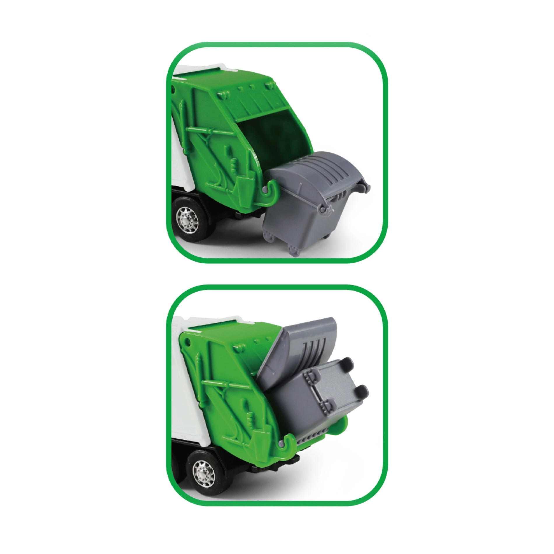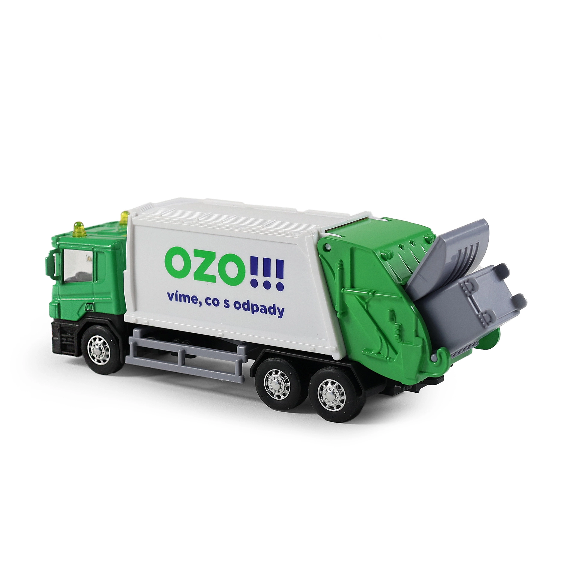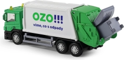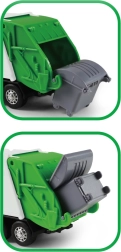 Šis detaliai sukurtas šiukšliavežės modelis sujungia tvirto metalo korpusą su lengva plastikine kėbulo dalimi, todėl tai puikus žaislas vaikams. Sunkvežimis turi atlenkiamas galines duris ir komplektuojamas su atsidarančiu šiukšlių konteineriu, leidžiančiu žaisti realistiškai.