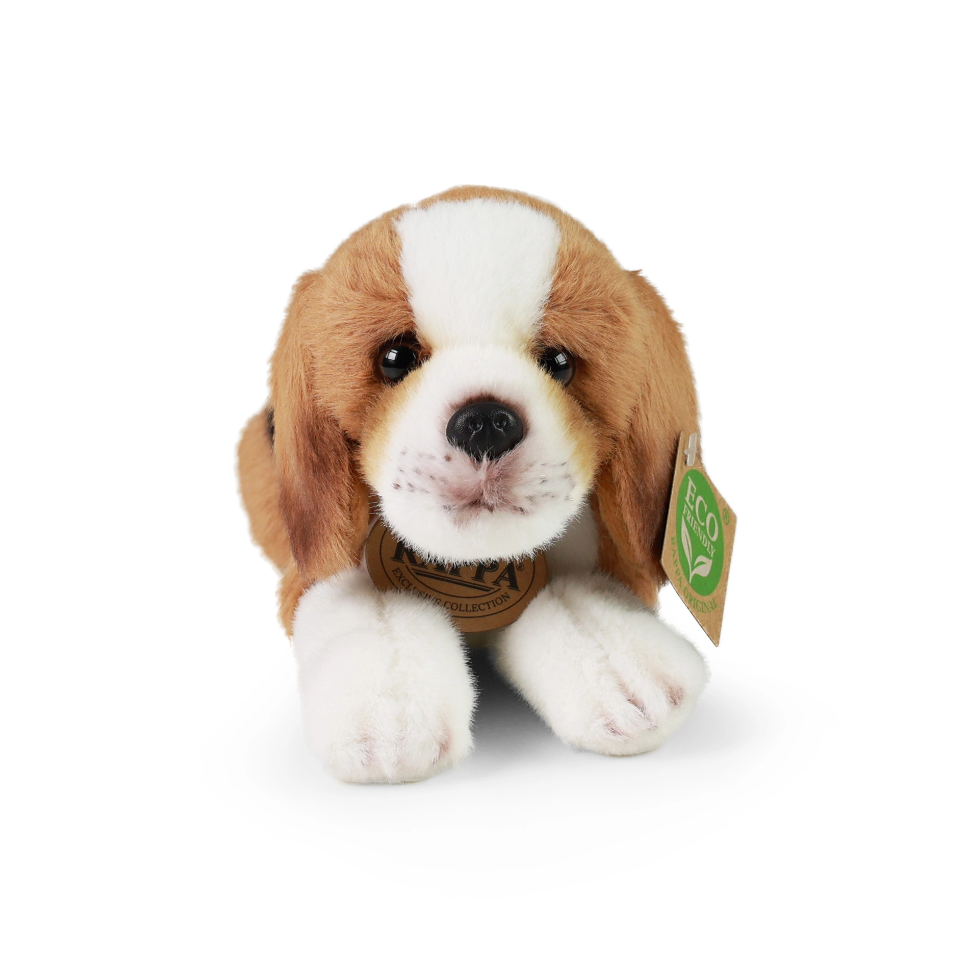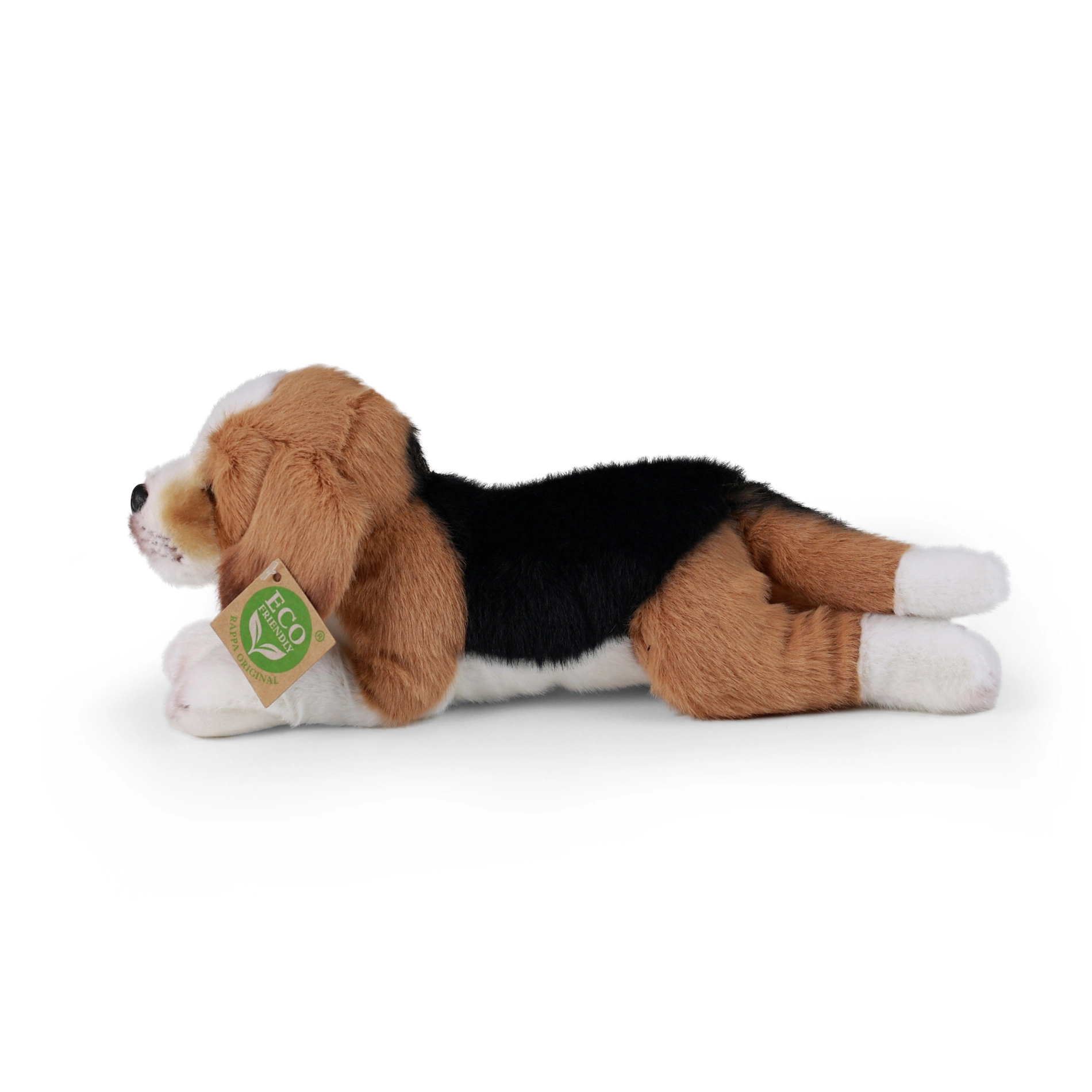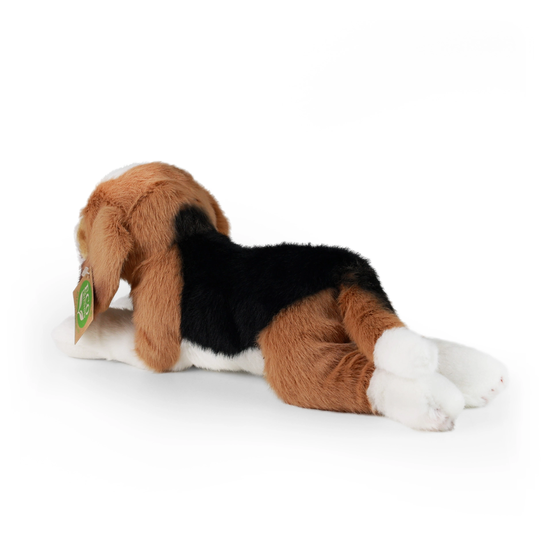 Šis plišinis šuo Biglis sukurtas su realistišku trispalviu kailiu, kuris primena tikrą šunį.