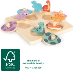 Atraskite linksmą ir edukacinę medinę atminties dėlionę su dinozaurais, pagamintą iš 100% FSC sertifikuotos medienos. Rinkinys jungia formelių dėliojimą ir atminties žaidimą viename: po spalvotais dinozauro kiaušiniais paslėptos atitinkančios dinozaurų figūrėlės. Dėl medinių rankenėlių detales lengva suimti net patiems mažiausiems, o žaidimas natūraliai lavina smulkiąją motoriką, rankų–akių koordinaciją, kantrybę, susikaupimą ir spalvų bei formų suvokimą.