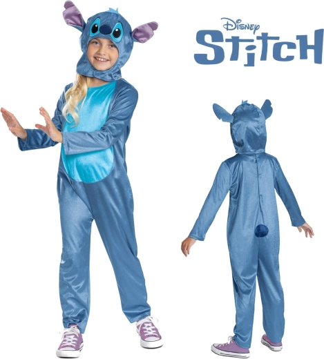 Mielas vaikiškas kostiumas STITCH, įkvėptas pasakos Lilo & Stitch, pradžiugins mažus ikoninio mėlyno ateivio gerbėjus. Minkšta medžiaga, patogus kirpimas ir gobtuvas su ausimis bei išsiuvinėtu veidu užtikrina maksimalų komfortą ir ilgas valandas linksmybių karnavale, namuose ar lauke. Idealu ūgiui 127–136 cm (apie 7–8 metai).
