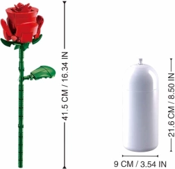 Sukurkite savo puokštę, kuri sužavės iš pirmo žvilgsnio. Flowers serijos konstruktorius siūlo realistines žiedlapių formas, žalius stiebus ir baltą cilindrinę vazą. Baigtas modelis yra maždaug 40,1 cm aukščio ir puikiai tinka kaip moderni nereikalaujanti priežiūros dekoracija.