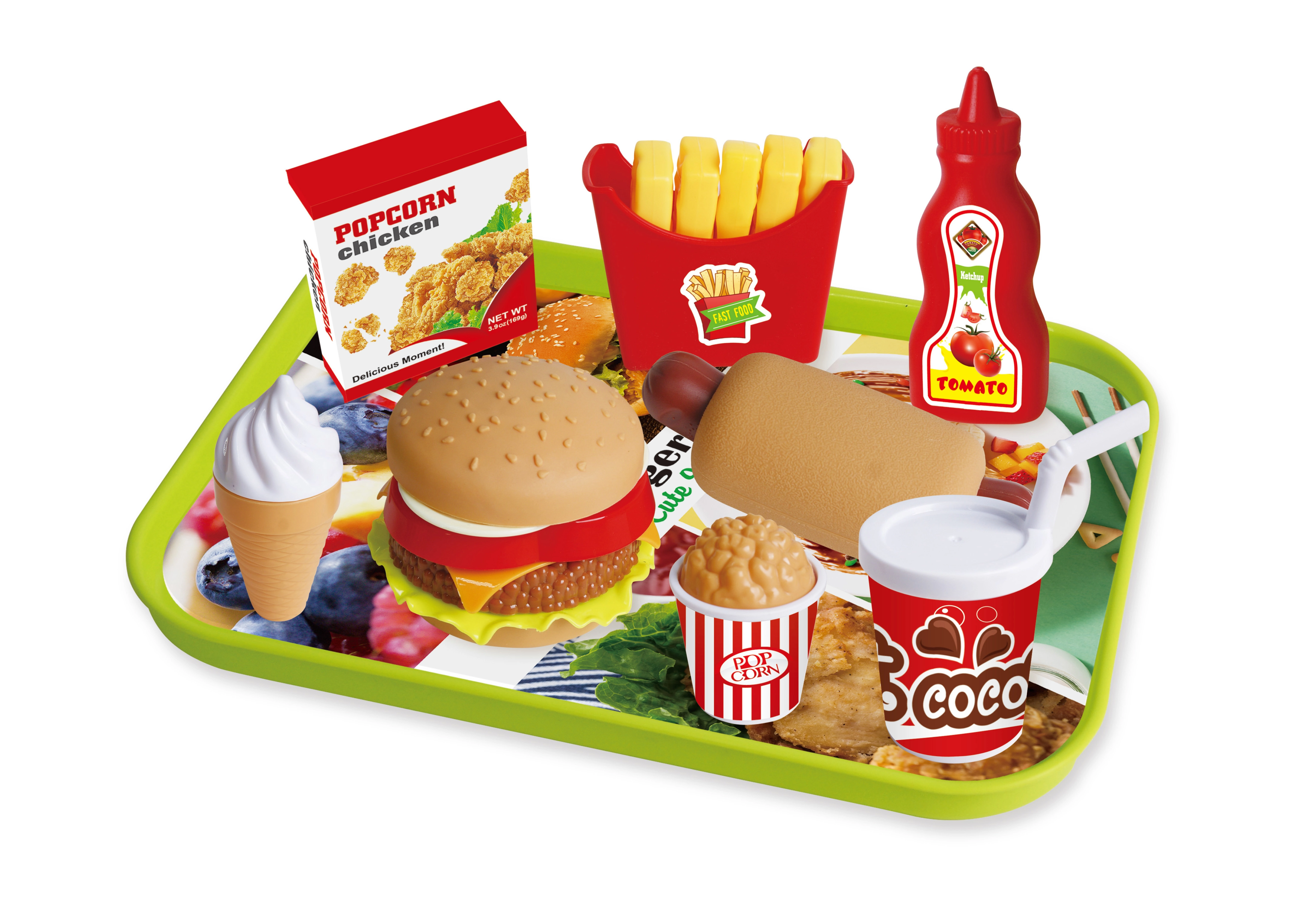 Šis žaislas idealiai tinka mažiems vaikams, kurie mėgsta įsivaizduoti, kad patiekia mėgstamus greito maisto užkandžius. Rinkinį sudaro daugybė gardžių maisto gabalėlių, atrodančių kaip tikri: