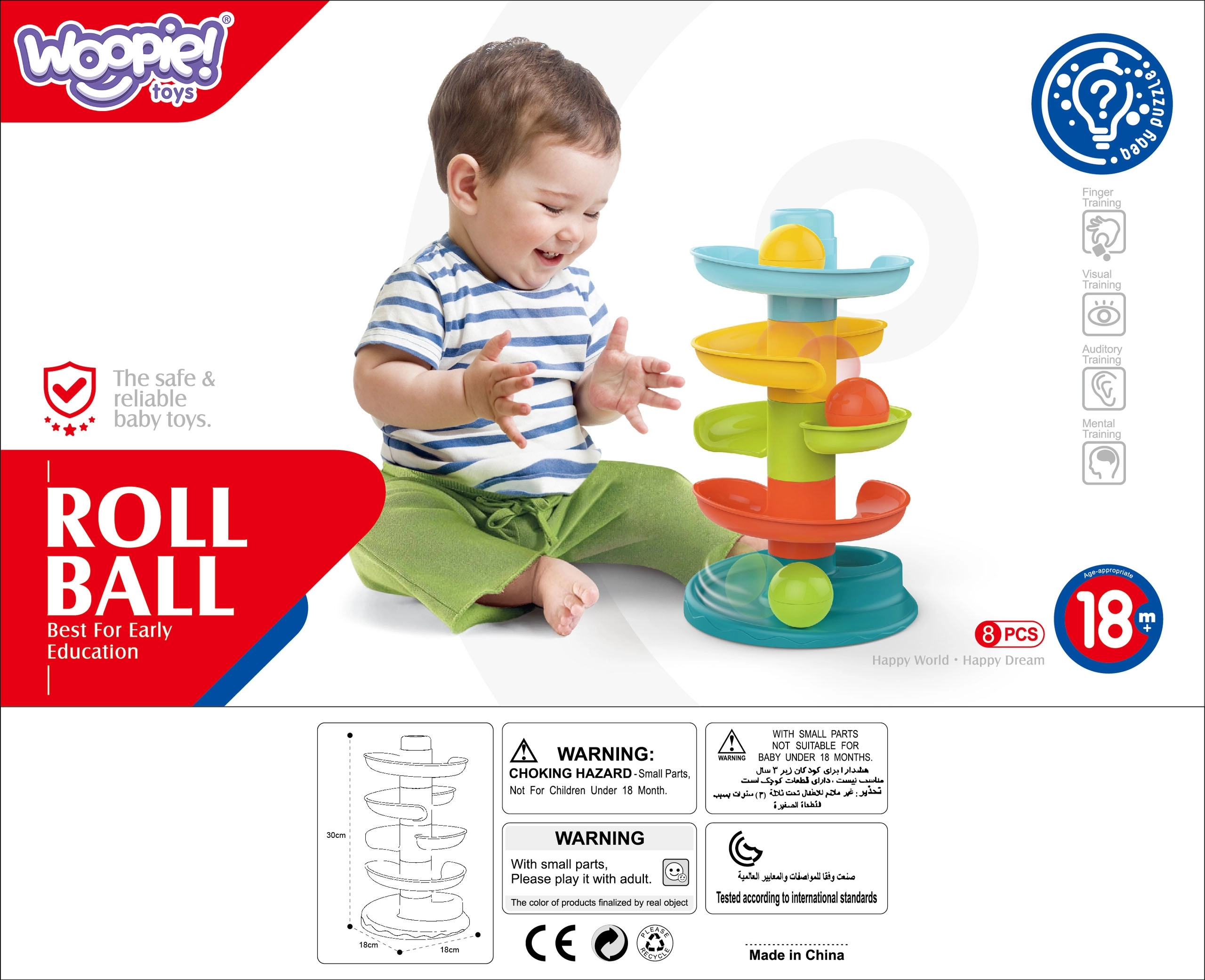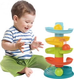 Rutuliukų trasa iš Woopie – tai smagus spiralinės formos bokštas, užtikrinantis begalinę pramogą. Jį sudaro 5 spalvingos dalys, kurias vaikai lengvai gali dėti vieną ant kitos, o 3 lengvi, patogiai sugriebiami rutuliukai skleidžia garsą.