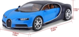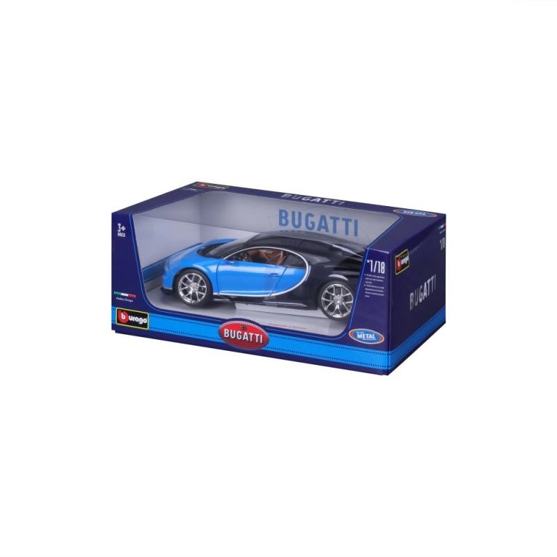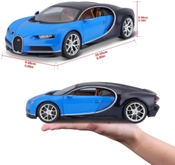 Atraskite realistišką BUGATTI Chiron repliką populiariu 1:18 masteliu. Modelis sujungia metalinį kėbulą su kruopščiai išdirbtomis plastikinėmis detalėmis ir siūlo tikslias proporcijas, autentišką mėlynos ir juodos spalvų derinį bei kokybiškus logotipų atspaudus. Idealu kaip kolekcinis modelis ir kaip aukštos kokybės žaislas vaikams nuo 3 metų.