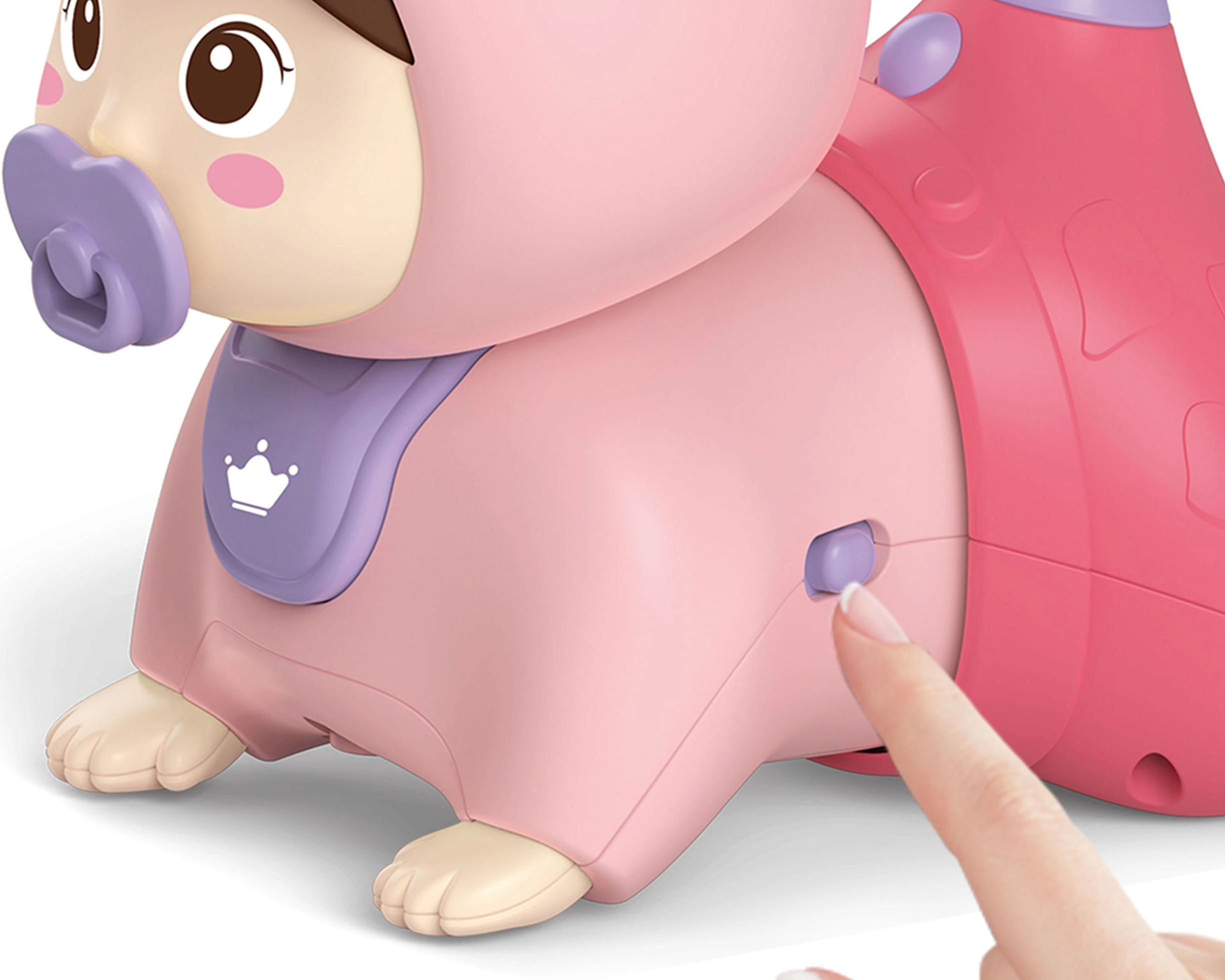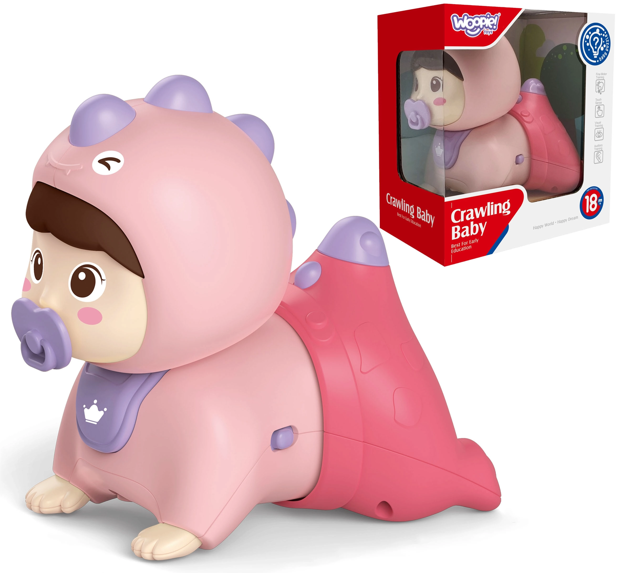 Ropojantis WOOPIE kūdikis su mielu gyvūnėlio kostiumėliu sudomina vaikus iš pirmo žvilgsnio. Interaktyvus mygtukas įjungia melodijas ir šviesos efektus, kurie kviečia vaiką sekti žaislą ir taip natūraliai skatina jo judėjimo raidą bei koordinaciją.
