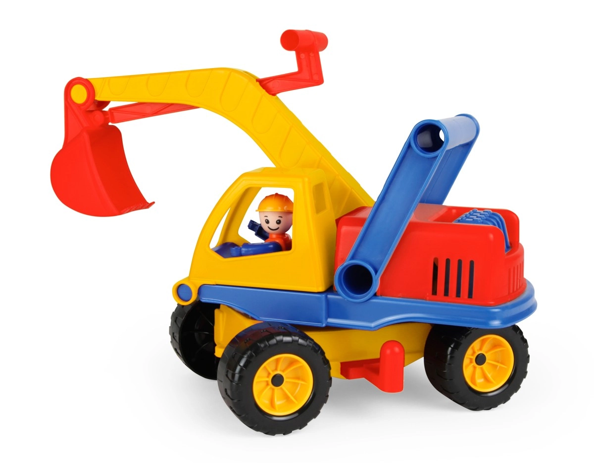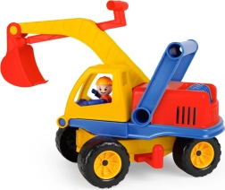 Šis tvirtas plastikinis ekskavatorius pradžiugins kiekvieną mažą statytoją. Dėl pasukamos viršutinės dalies ir lengvai valdomo strėlio su kaušu vaikai gali pasinerti į realistiškus statybvietės žaidimus. Integruota vairuotojo figūrėlė ugdo vaizduotę ir padeda lavinti motoriką.