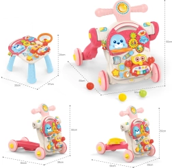 Šis žaislas – tikra staigmenų skrynia, kurią vaikas gali atrasti savarankiškai. Kelių funkcijų derinys viename žaisle – vaikštynė, paspirtukas, paspiriama mašinėlė ir edukacinis staliukas – užtikrina, kad žaislas ilgai nepabos.