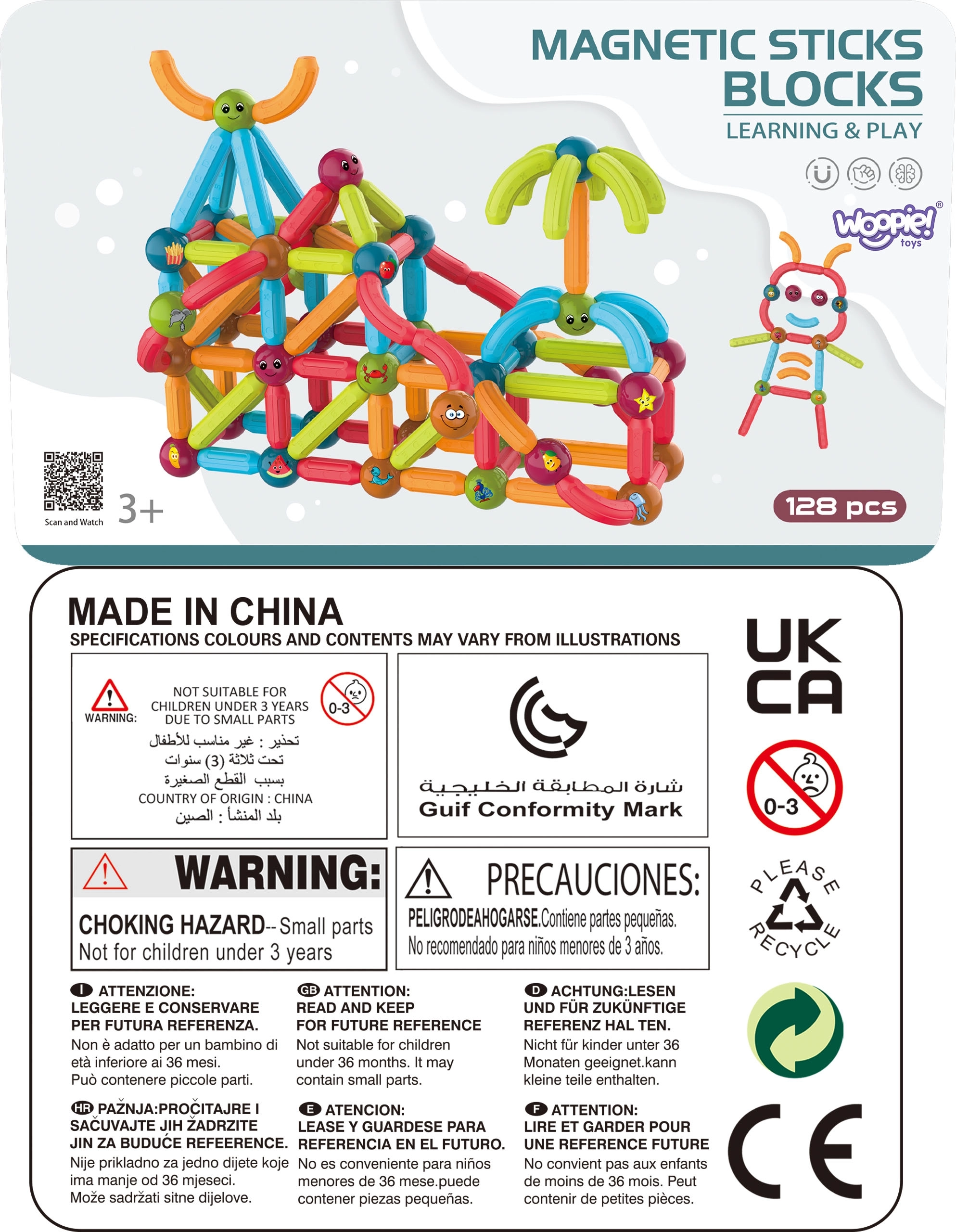 Atraskite kūrybišką pasaulį su magnetiniu WOOPIE konstruktoriu, turinčiu 128 detales, kuris jungia pramogą ir mokymąsi. Dėl didelių, tvirtų ir saugių detalių vaikai lengvai kurs 3D konstrukcijas, geometrines formas ir mini namelį. Konstruktorius lavina smulkiąją motoriką, erdvinį mąstymą, kūrybiškumą ir koncentraciją, o taip pat moko abėcėlės, skaičiavimo ir formų. Rinkinyje yra ir pavyzdžių kortelė bei praktiška nešiojama dėžutė.