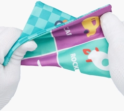 Sudėtyje yra įvairių tekstūrų ir raštų, kurie padeda vaikams atrasti spalvų ir raštų kupiną pasaulį.