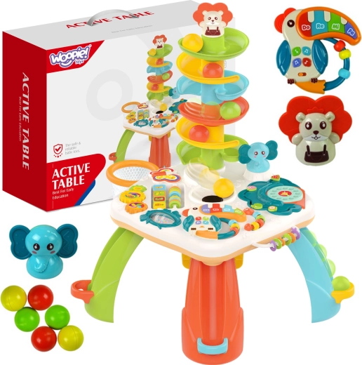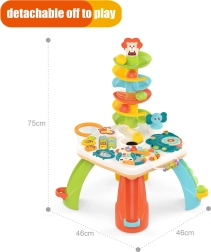 Interaktyvus vaikų staliukas sujungia mokomąjį skydelį su sensoriniais elementais ir kamuoliukų čiuožykla. Spalvingas ir žaismingas dizainas patiks tiek berniukams, tiek mergaitėms. Vaikiškas staliuko dizainas derina pramogą su mokymusi, padeda lavinti motorinius ir rankų įgūdžius, klausą ir pasaulio pažinimą. Tai idealus žaislas vaikų raidai skatinti.