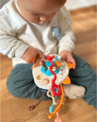 Šis daugiafunkcis sensorinis lapės formos žaislas sukurtas vaikams nuo maždaug 6 mėnesių. Įvairios tekstūros, spalvos ir garsai lavina regimąjį, lytėjimo ir klausos suvokimą, o virvelių traukimas sukuria garsus ir švelnias vibracijas, natūraliai skatinančias tolesnę veiklą. Minkštos silikoninės ausys veikia kaip kramtukas jautrioms dantenoms.