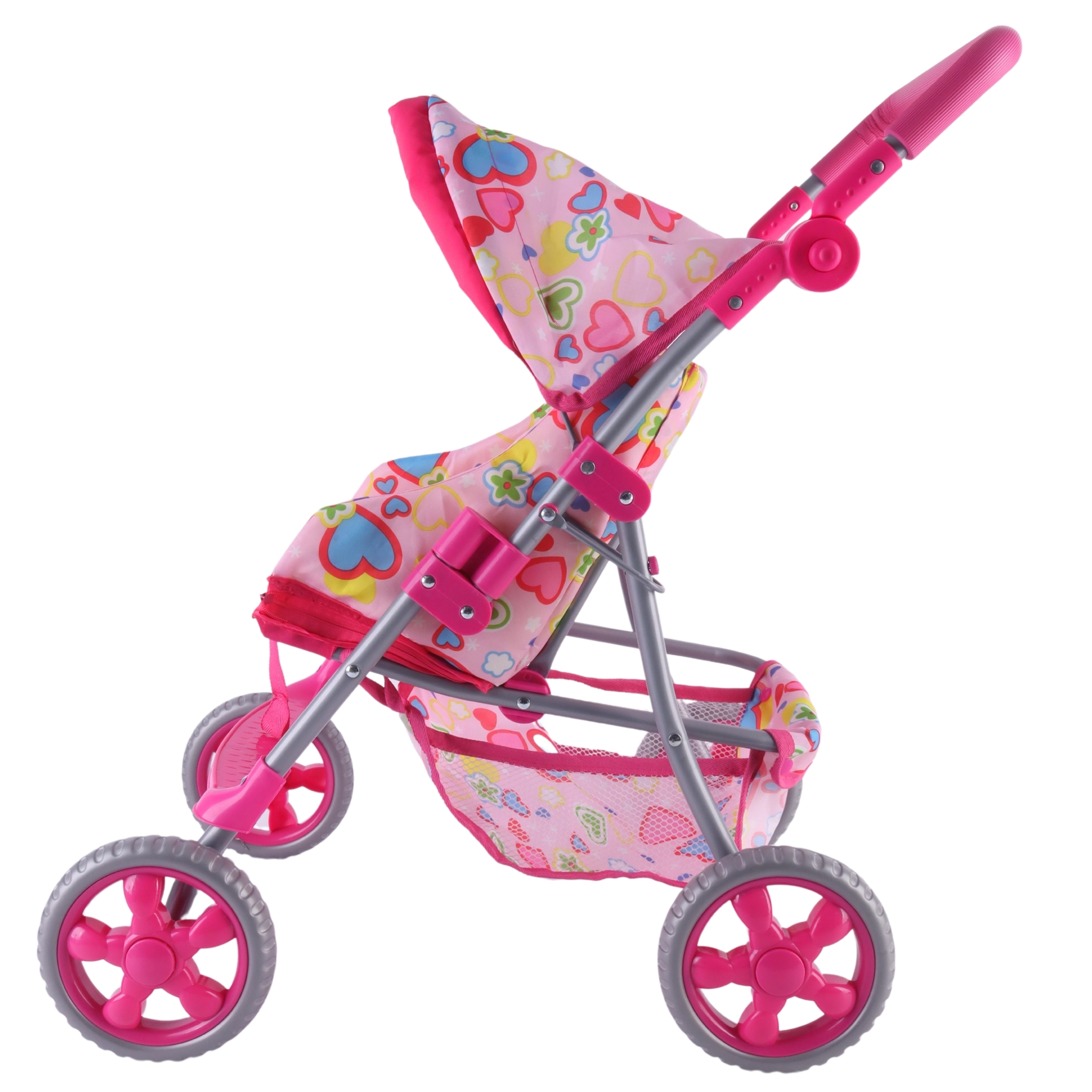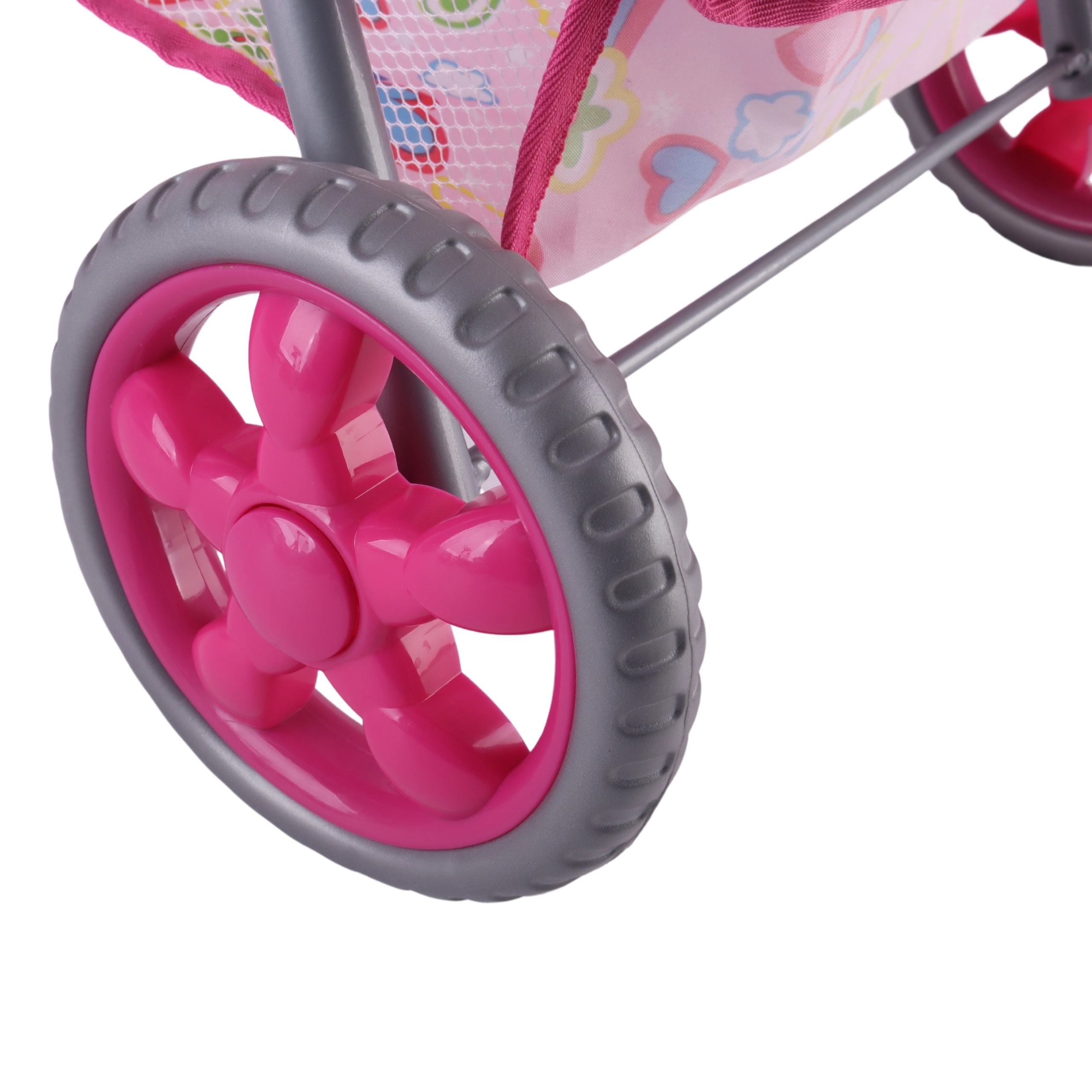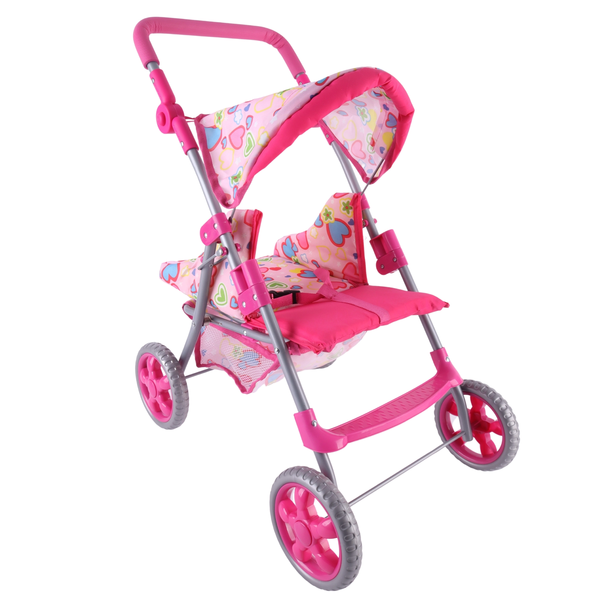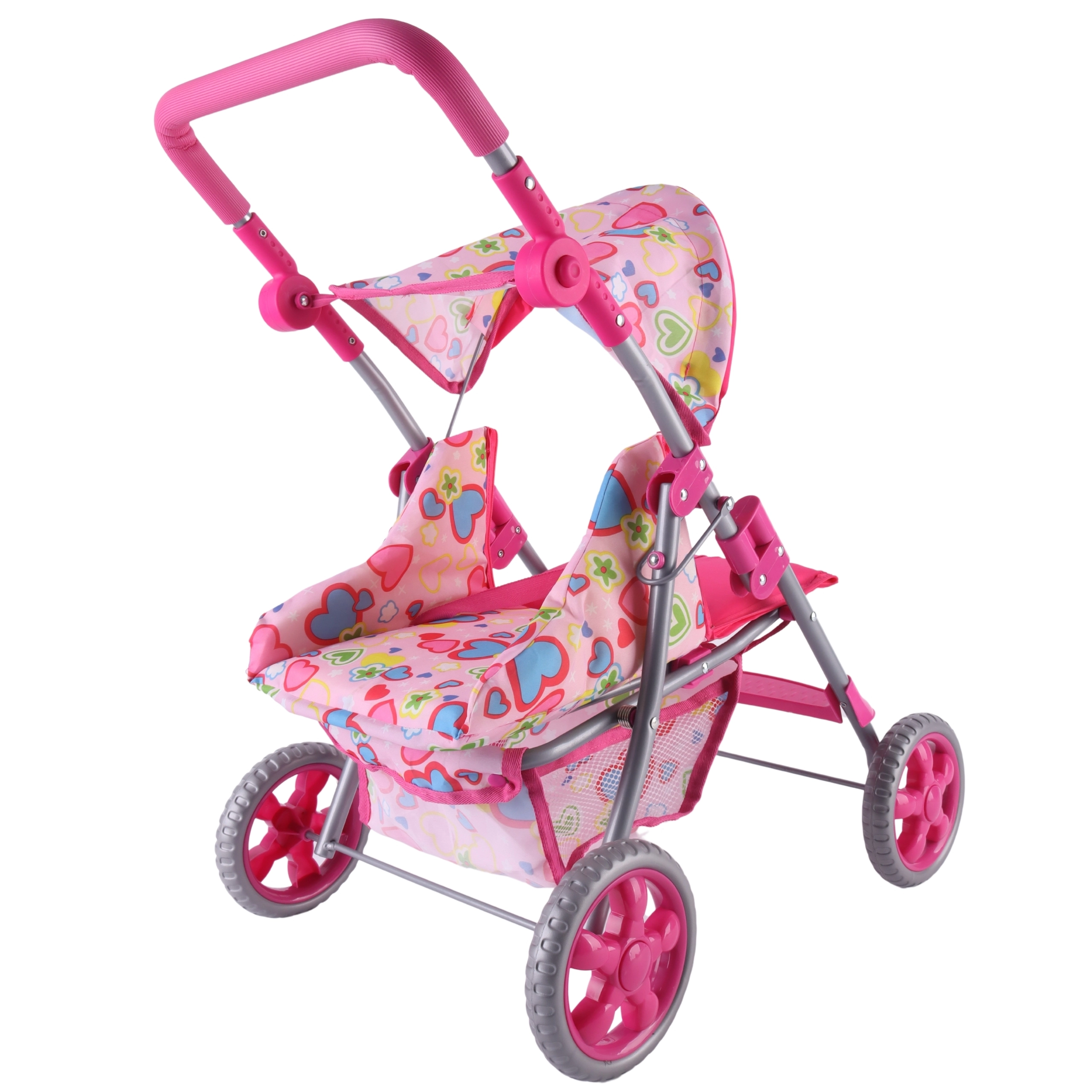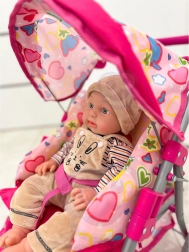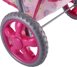 Lengvas ir stabilus Woopie lėlių vežimėlis pradžiugins kiekvieną mažą mamytę. Jis turi reguliuojamą rankeną, sulankstomą stogelį, saugos diržus ir praktišką krepšelį smulkmenoms. Dėl tylių putplasčio ratų puikiai tinka namams ir pasivaikščiojimams, o po žaidimo lengvai sulankstysite ir sutaupysite vietos. Stilingas dizainas su širdelėmis patiks vaikams.