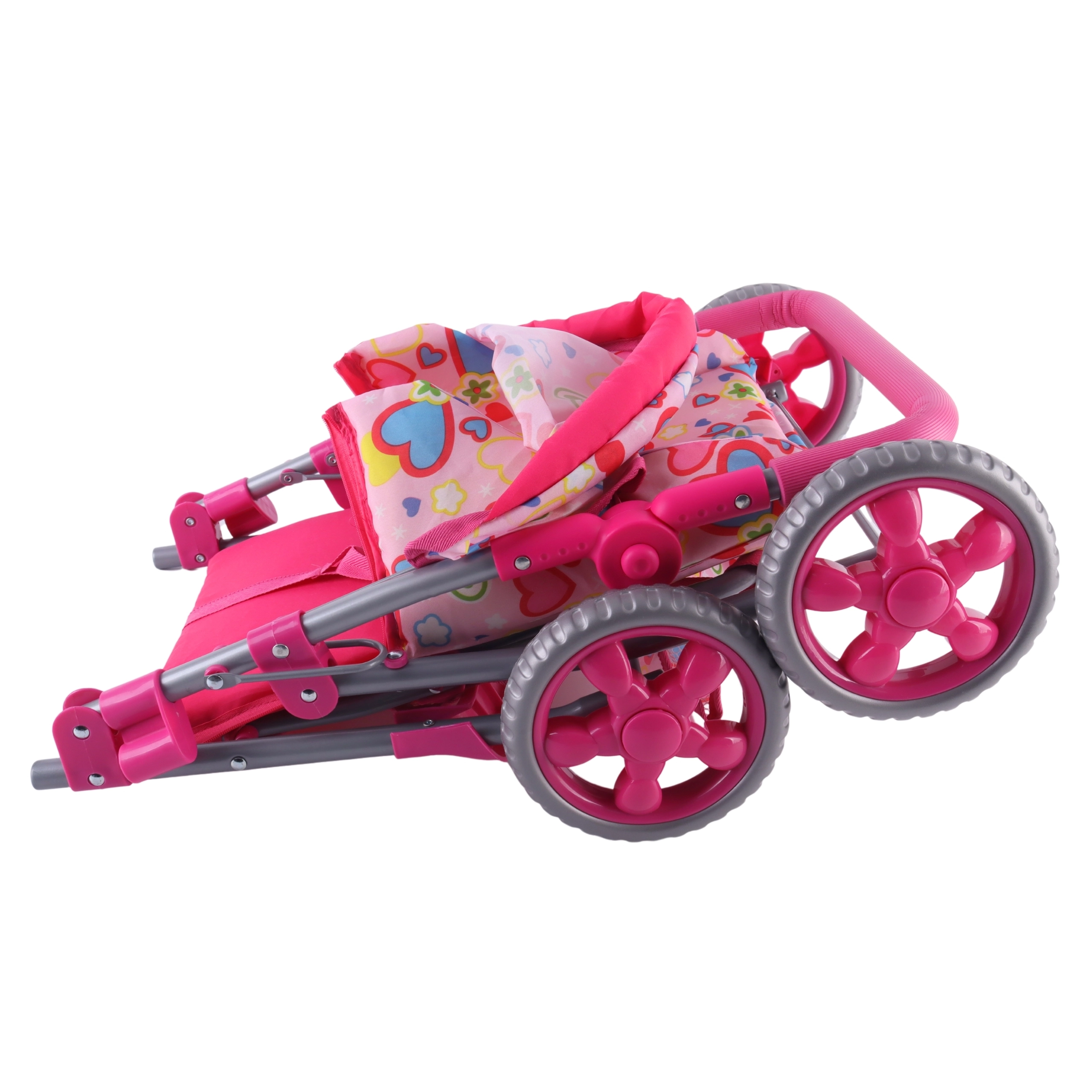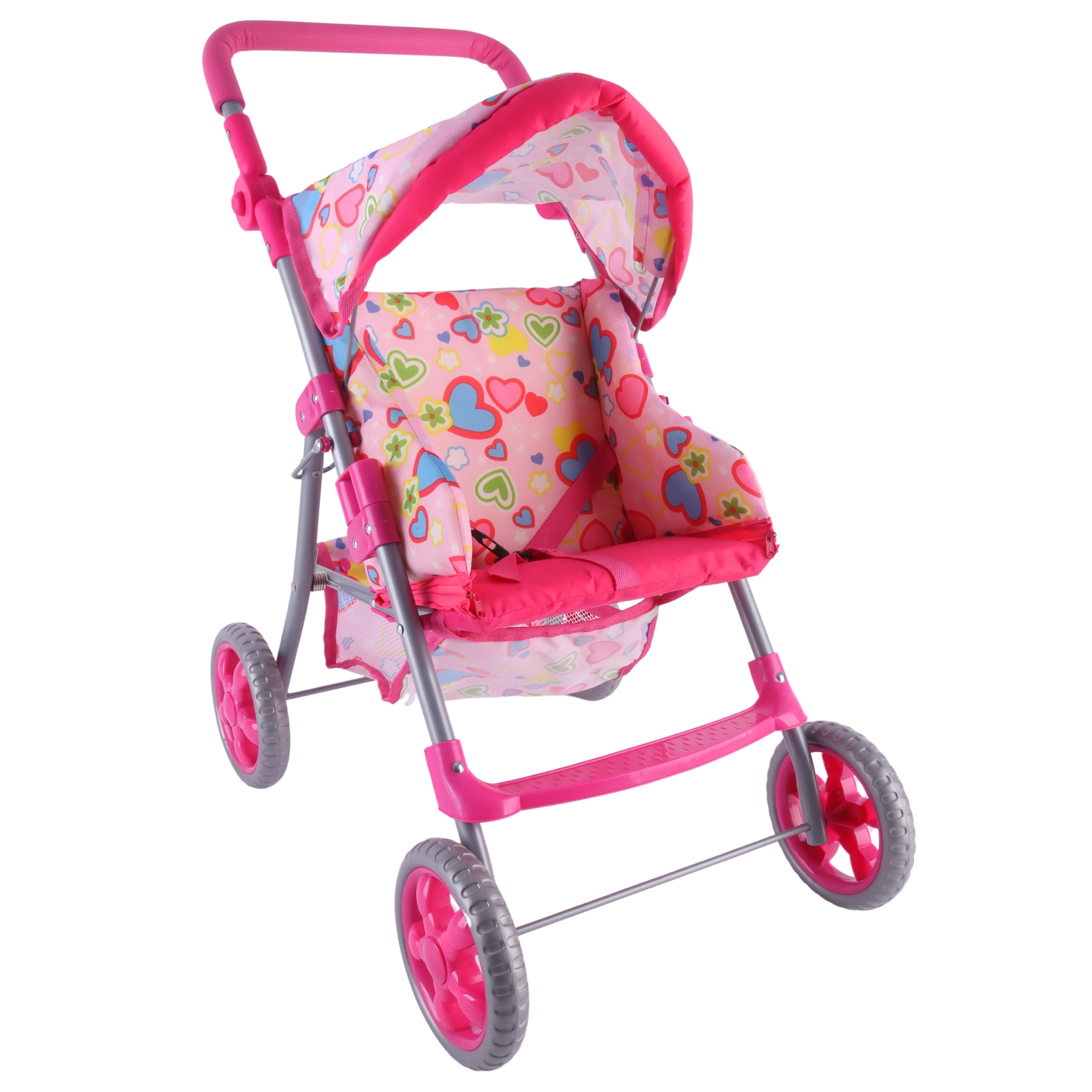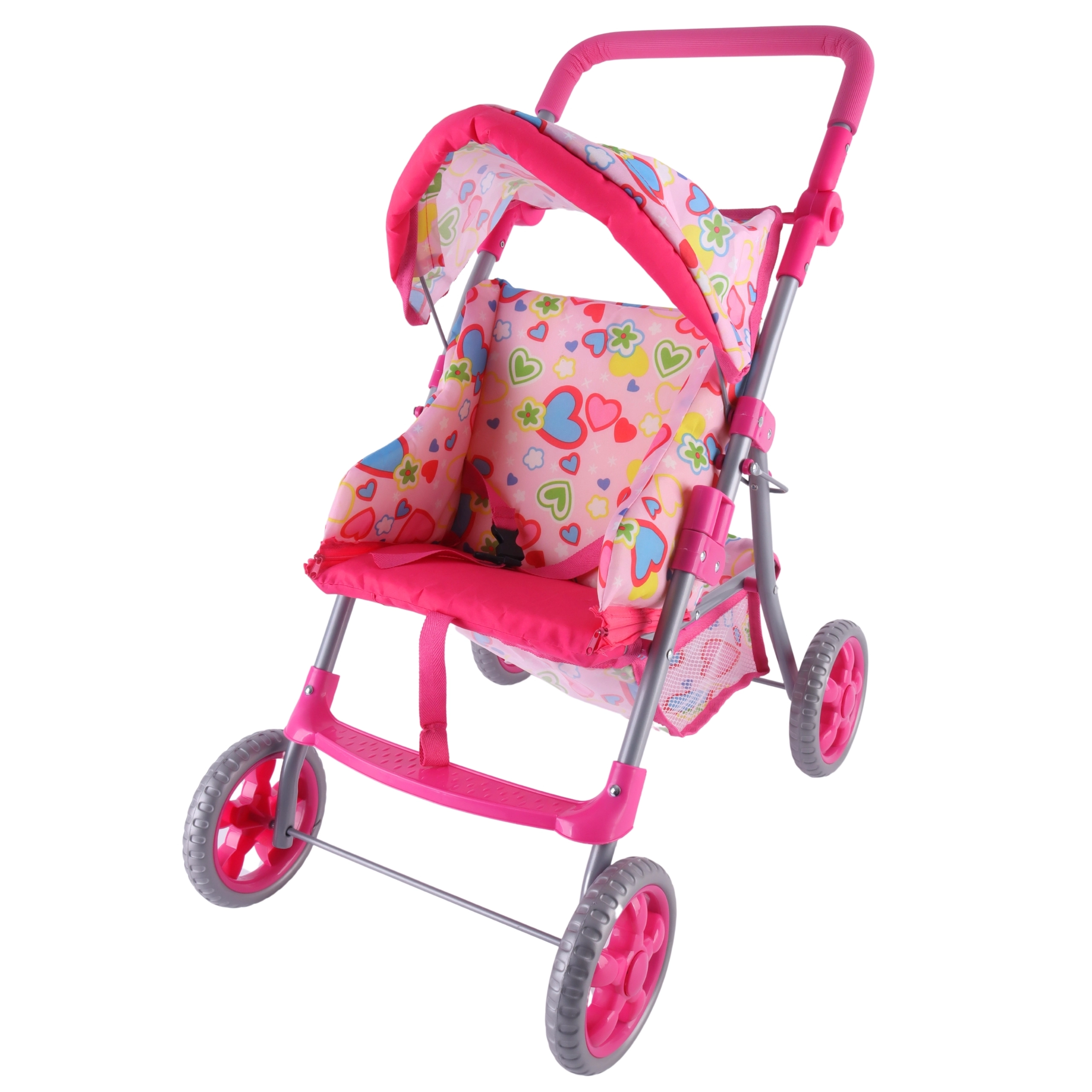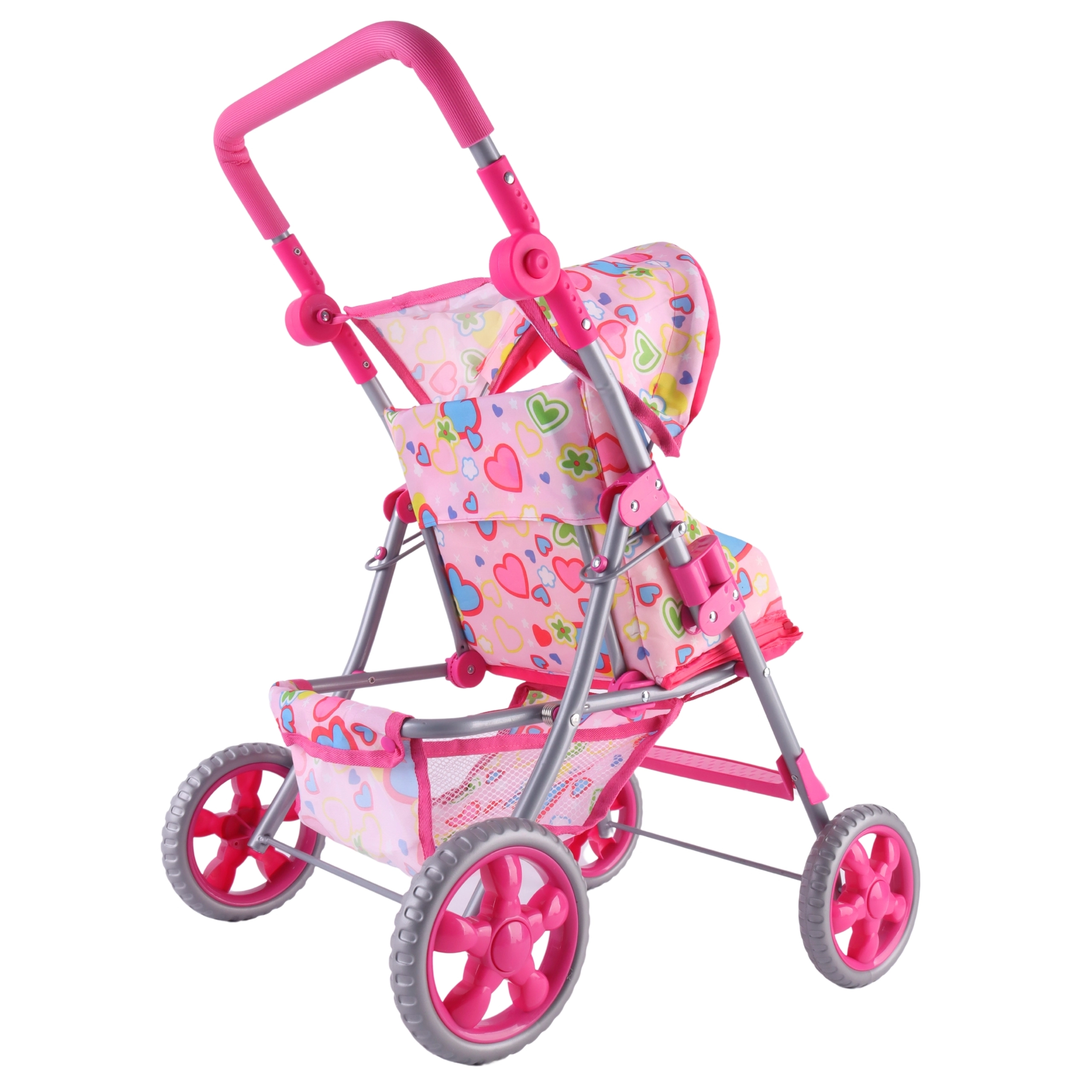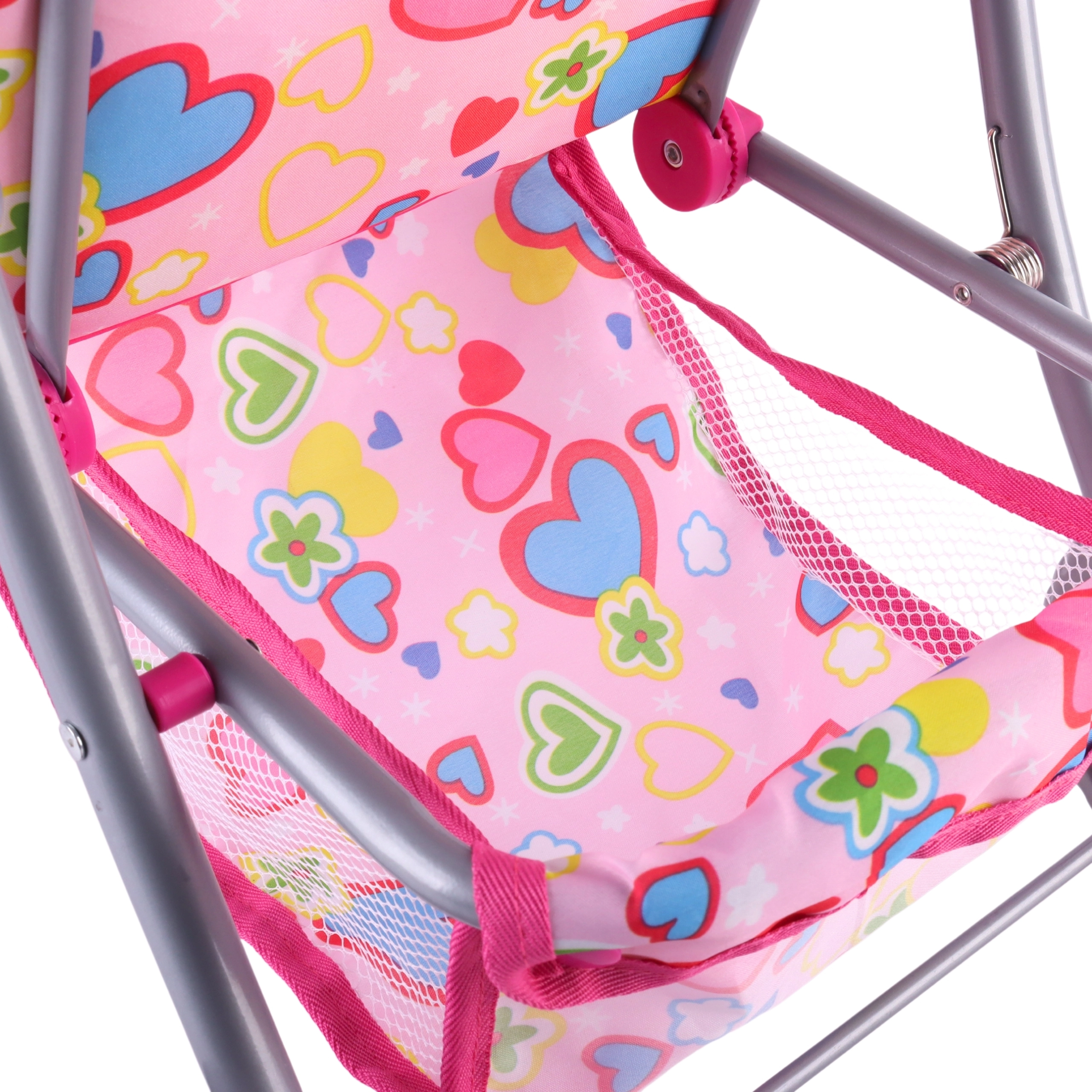 Lengvas ir stabilus Woopie lėlių vežimėlis pradžiugins kiekvieną mažą mamytę. Jis turi reguliuojamą rankeną, sulankstomą stogelį, saugos diržus ir praktišką krepšelį smulkmenoms. Dėl tylių putplasčio ratų puikiai tinka namams ir pasivaikščiojimams, o po žaidimo lengvai sulankstysite ir sutaupysite vietos. Stilingas dizainas su širdelėmis patiks vaikams.