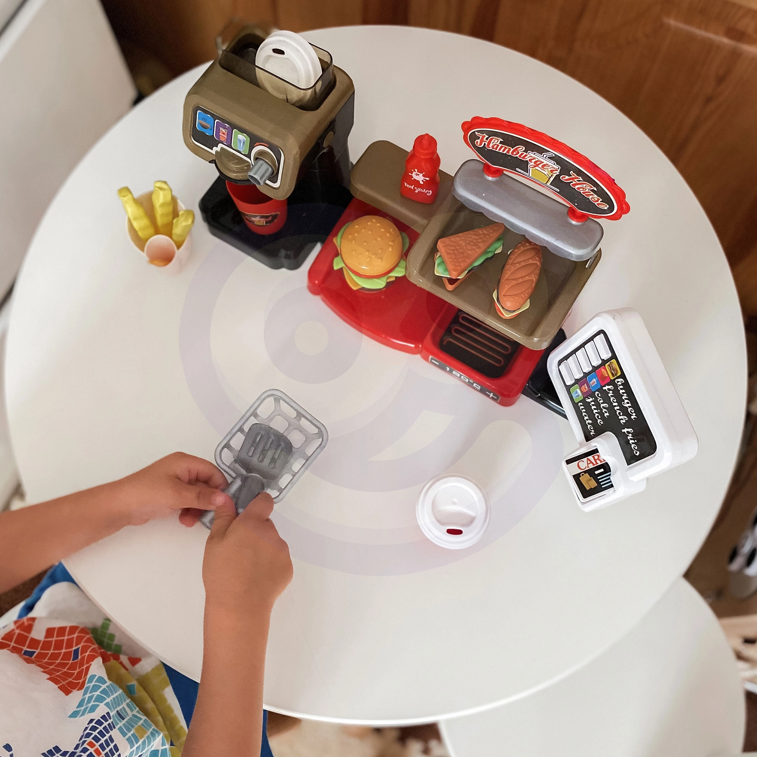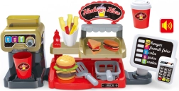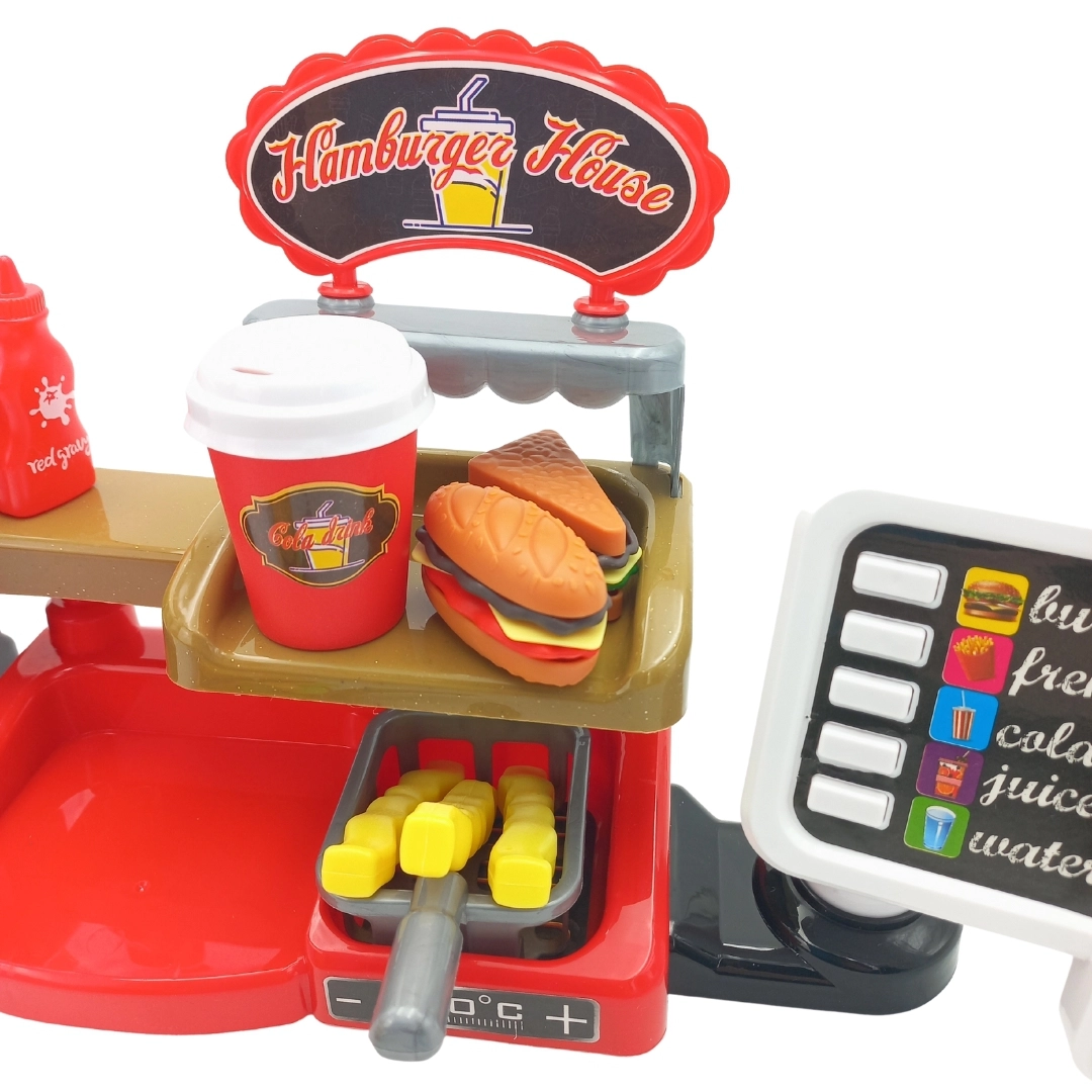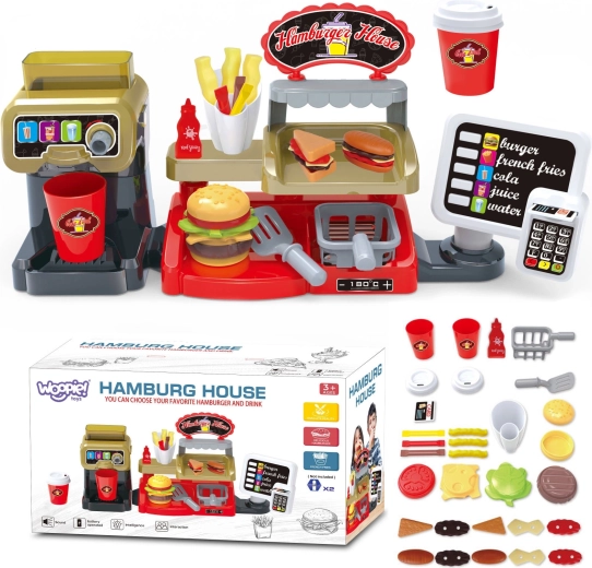 Šis interaktyvus rinkinys leidžia vaikams patirti autentišką darbą greitojo maitinimo vietoje: jie gali ne tik pateikti patiekalus, bet ir naudotis kasa su garso efektais. Vaikams patiks ir galimybė pilstyti tikrą vandenį iš dozatoriaus, kas suteikia dar daugiau realistiškumo.