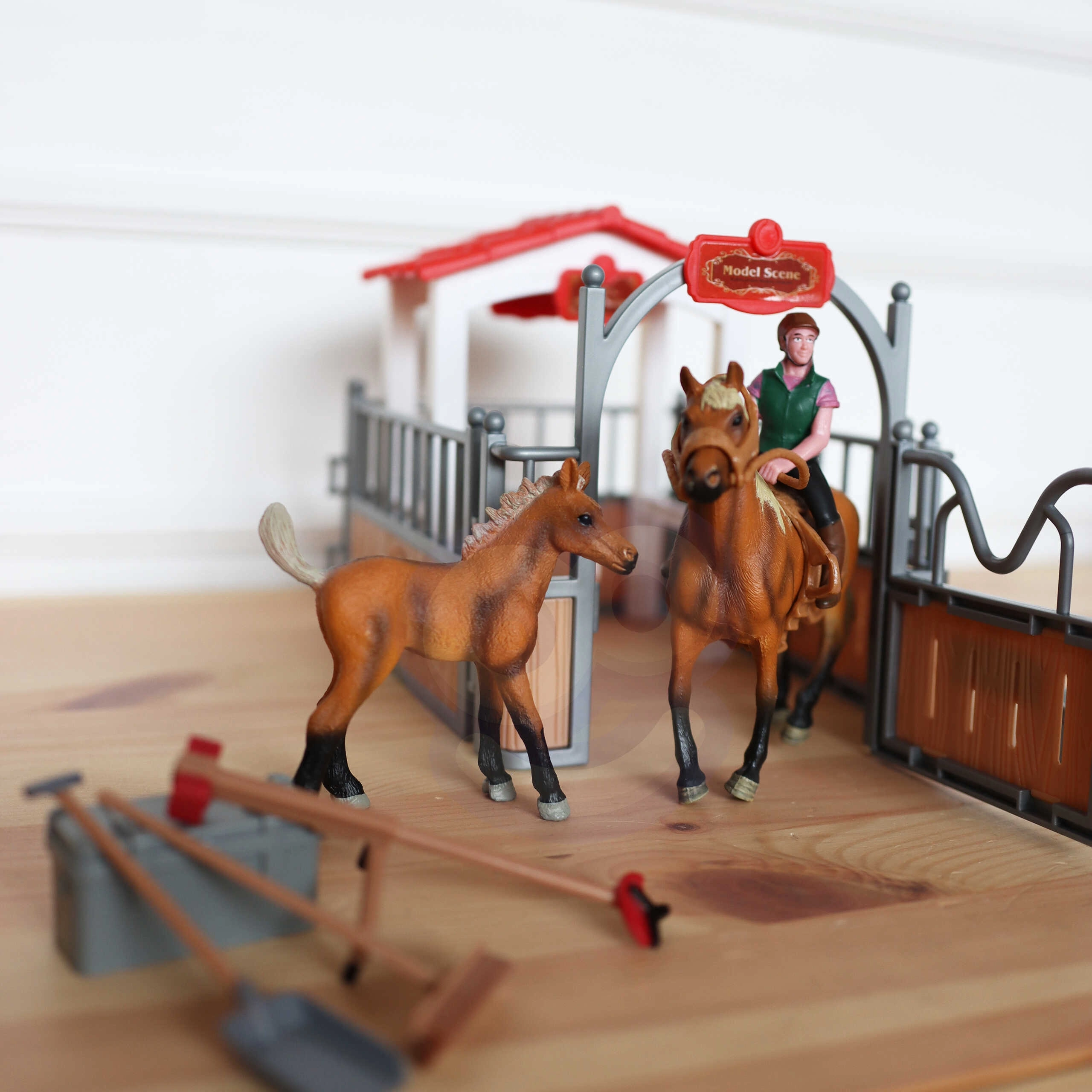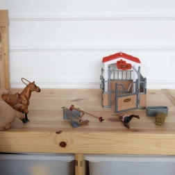 - 18 dalių rinkinys su pilna įranga žaidimams arklidėje.