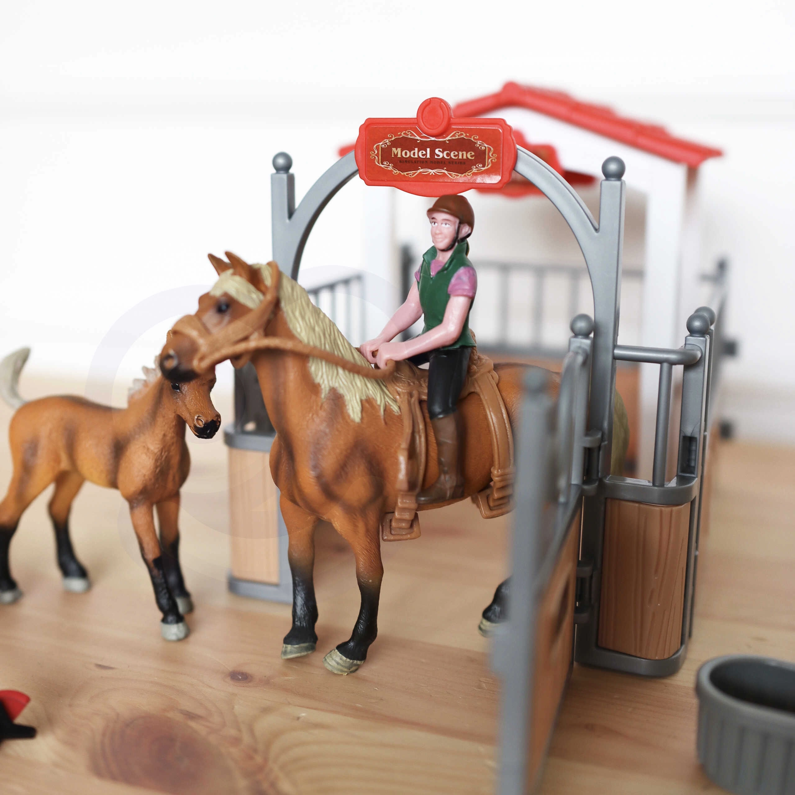 - 2 realistiškos arklių figūrėlės ir raitininkė dar įvairesniems žaidimo scenarijams.