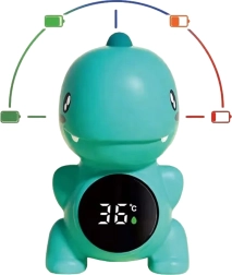 Mielas dinozauro formos WOOPIE termometras padeda patogiai stebėti saugią temperatūrą maudant ir vaikų kambaryje. Dėl skaitmeninio ekrano greitai sužinosite reikšmę, o spalvinė indikacija padės atpažinti idealią vandens temperatūrą vaikams. Kompaktiška ir saugi konstrukcija iš malonių medžiagų tinka kasdieniam naudojimui, o žaismingą dizainą pamėgs ir vaikai, ir tėvai.