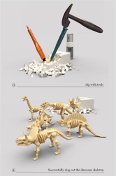 Su šiuo kūrybiniu rinkiniu vaikai pasiners į prehistorinį pasaulį ir išbandys tikro paleontologo darbą. Kiekviename gipsiniame bloke slepiasi istorijos dalelė – dinozauro skeletas, kurį reikia kruopščiai iškasti, nuvalyti ir surinkti. Puiki dovana smalsiems vaikams nuo 8 metų, kuri skatina vikrumą, susikaupimą ir gamtamokslinį entuziazmą.