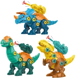 Vaikai sudės tris dinozaurus iš atskirų detalių su varžtais – smagus būdas lavinti smulkiąją motoriką ir loginį mąstymą.