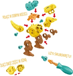 Šis konstravimo rinkinys mažiesiems meistrams nuo 3 metų suteikia valandų valandas prasmingo smagumo. Vaikai, naudodami tikroviškus įrankius, lavina smulkiąją motoriką, akių–rankų koordinaciją ir kartu plėtoja vaizduotę priešistorinių padarų pasaulyje. Judančios dinozaurų dalys didina žaidimo įvairovę ir skatina kurti savo istorijas.