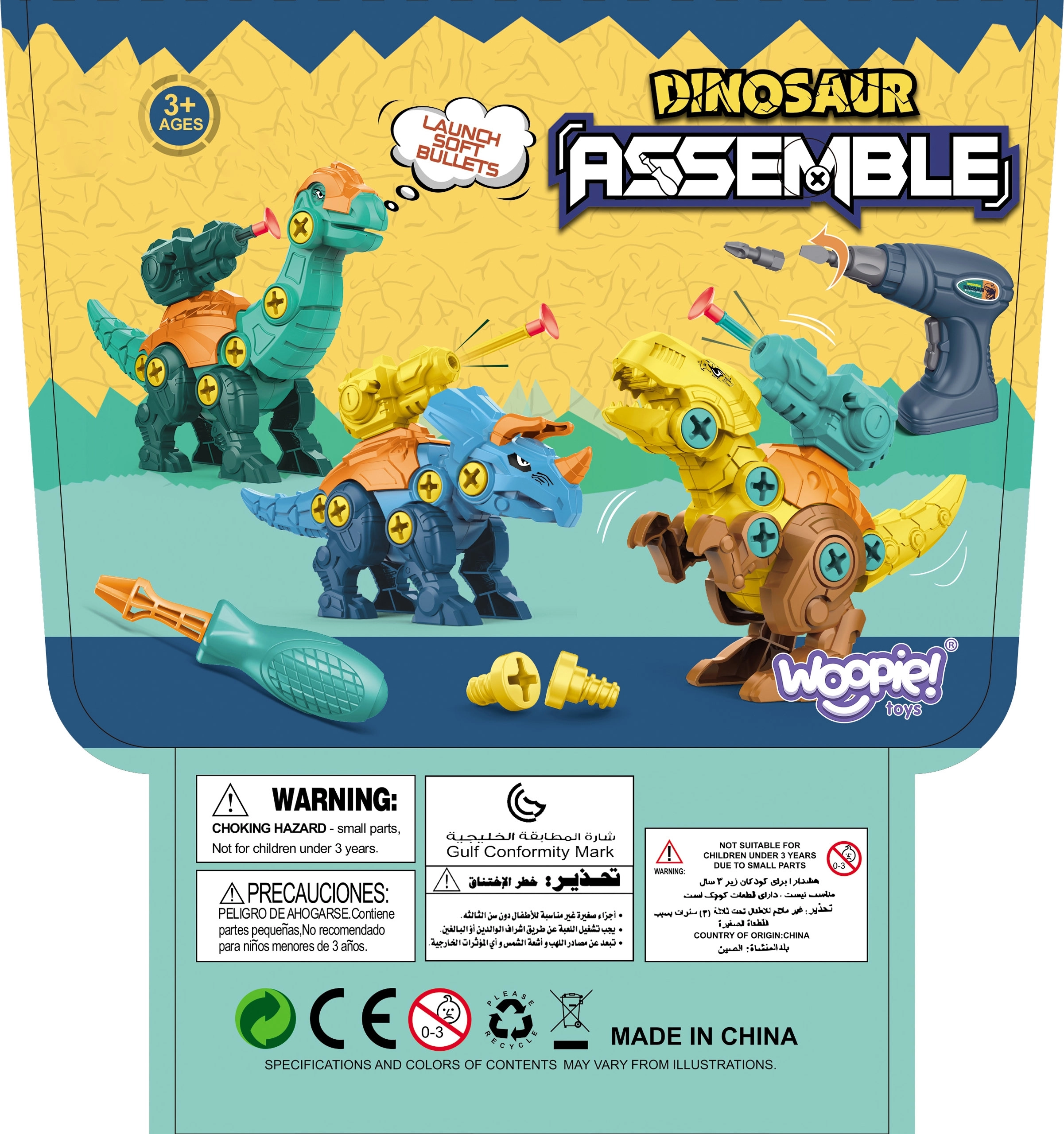 Atraskite kūrybišką konstravimo pasaulį su WOOPIE surenkamais dinozaurais. Rinkinyje rasite 3 spalvingus dinozaurus, kuriuos vaikai patys surinks naudodami gręžtuvą ir atsuktuvą su keičiamais antgaliais. Surinkti dinozaurai turi judančią galvą, uodegą ir galūnes, todėl žaisti dar smagiau. Puikus žaislas smulkiajai motorikai, kantrybei ir kūrybiškumui lavinti, laikomas patogiame nešiojamame lagaminėlyje.