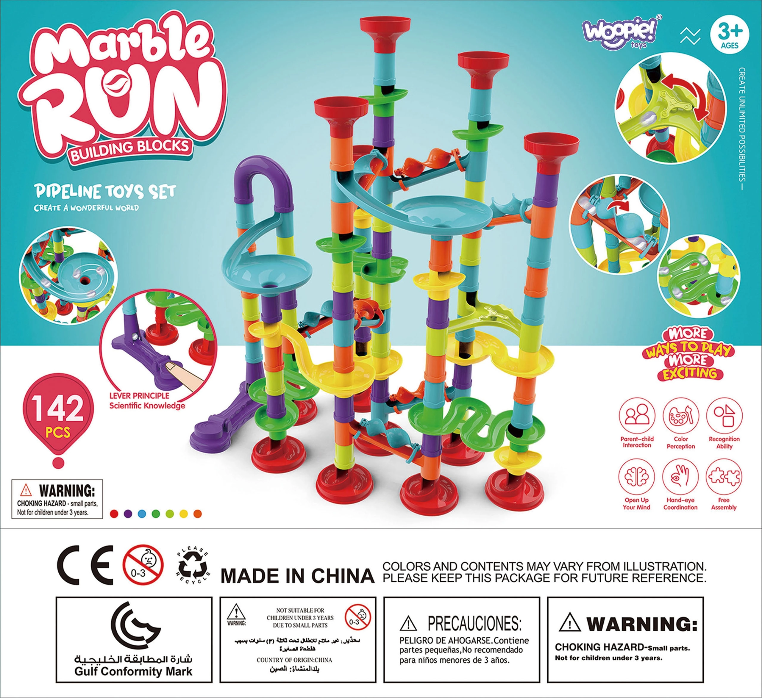 Spalvingas spiralinis kulodromas WOOPIE su 142 dalimis suteikia begalinį smagumą ir mokymąsi. Vaikai gali lengvai dėlioti ir laisvai jungti elementus į originalias trasas, rinkinyje yra ir paleidėjas, ir rutuliukai. Idealiai parinktas dalių dydis lavina akių–rankų koordinaciją ir smulkiąją motoriką.