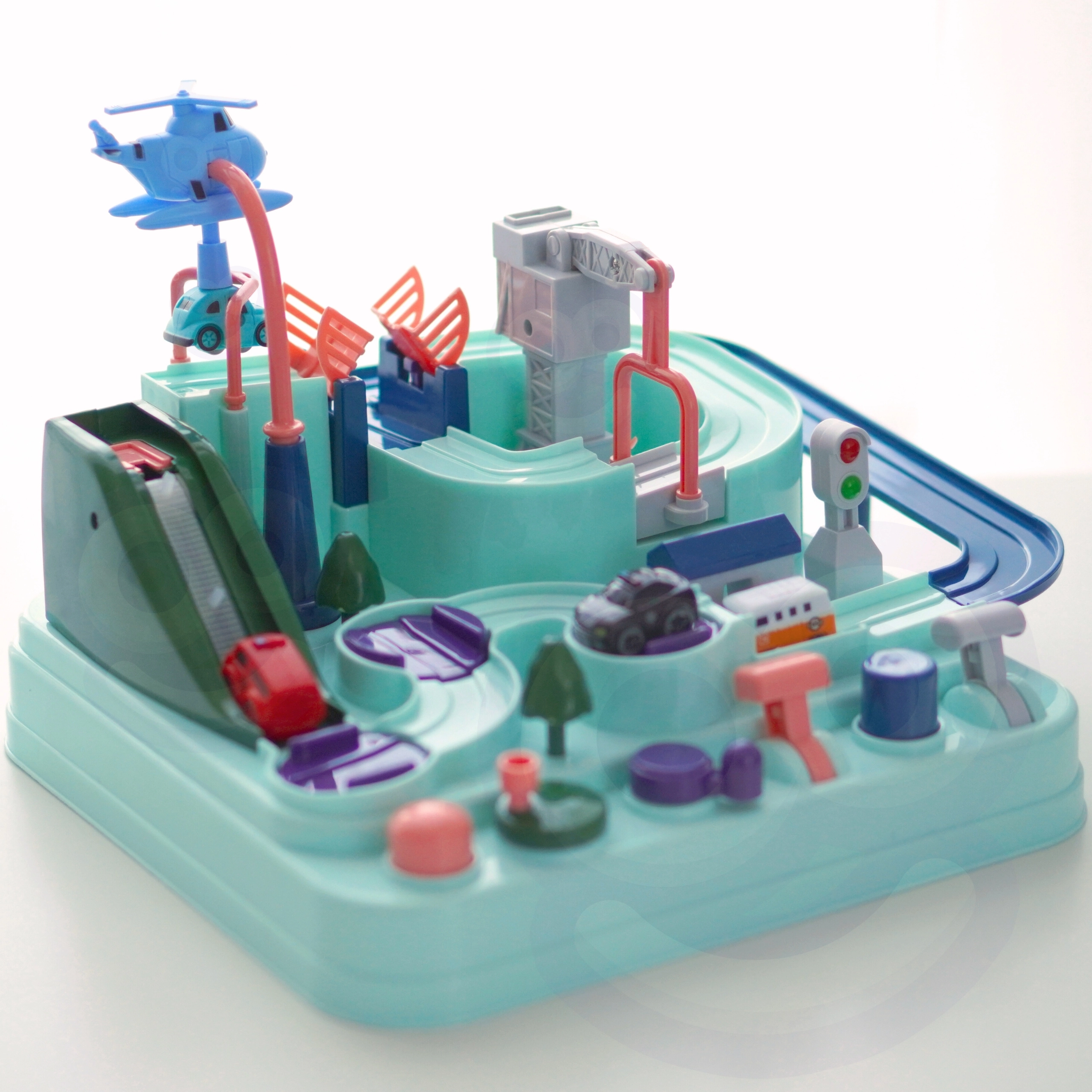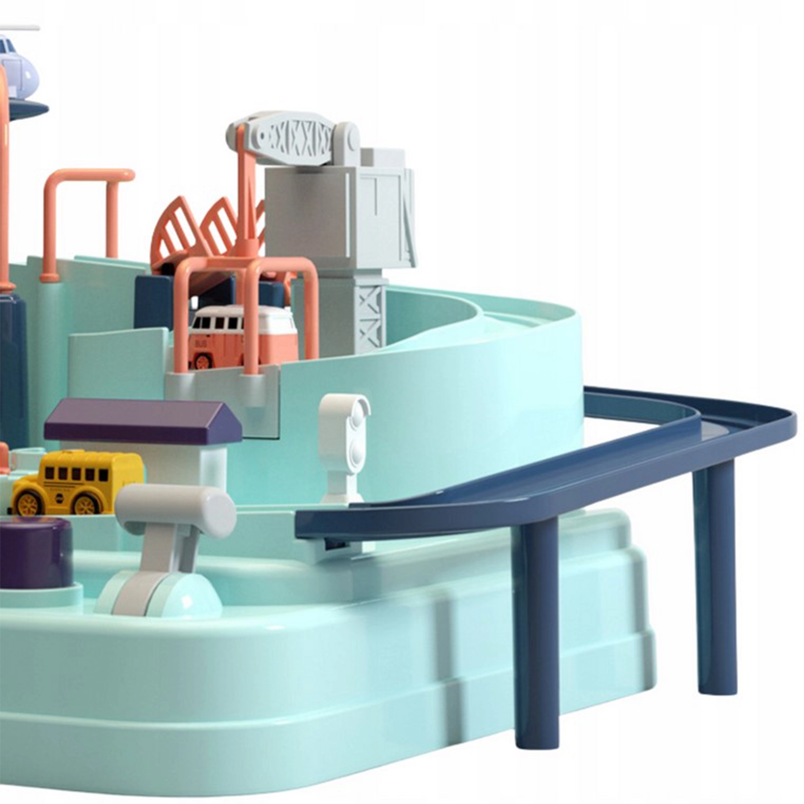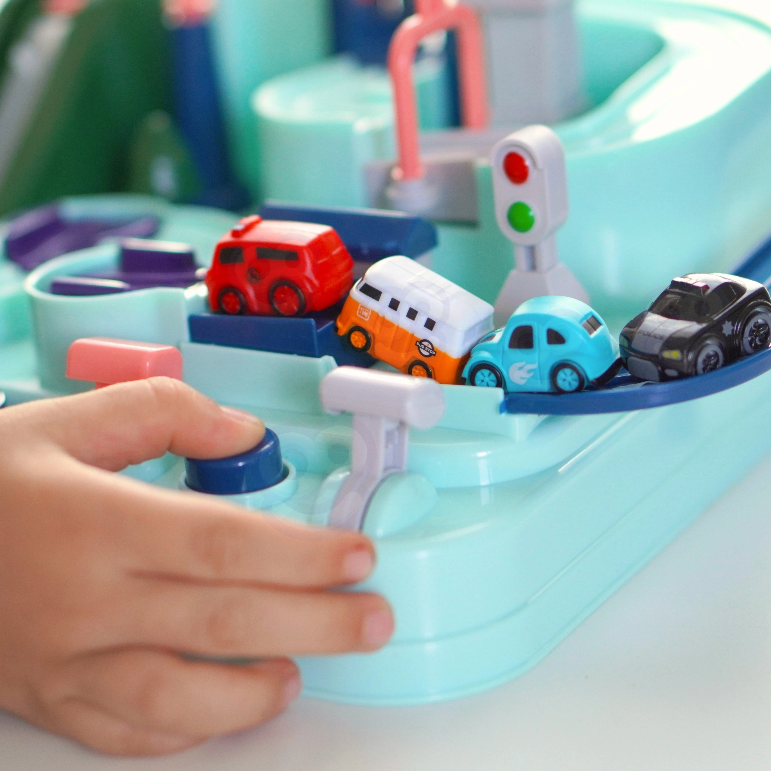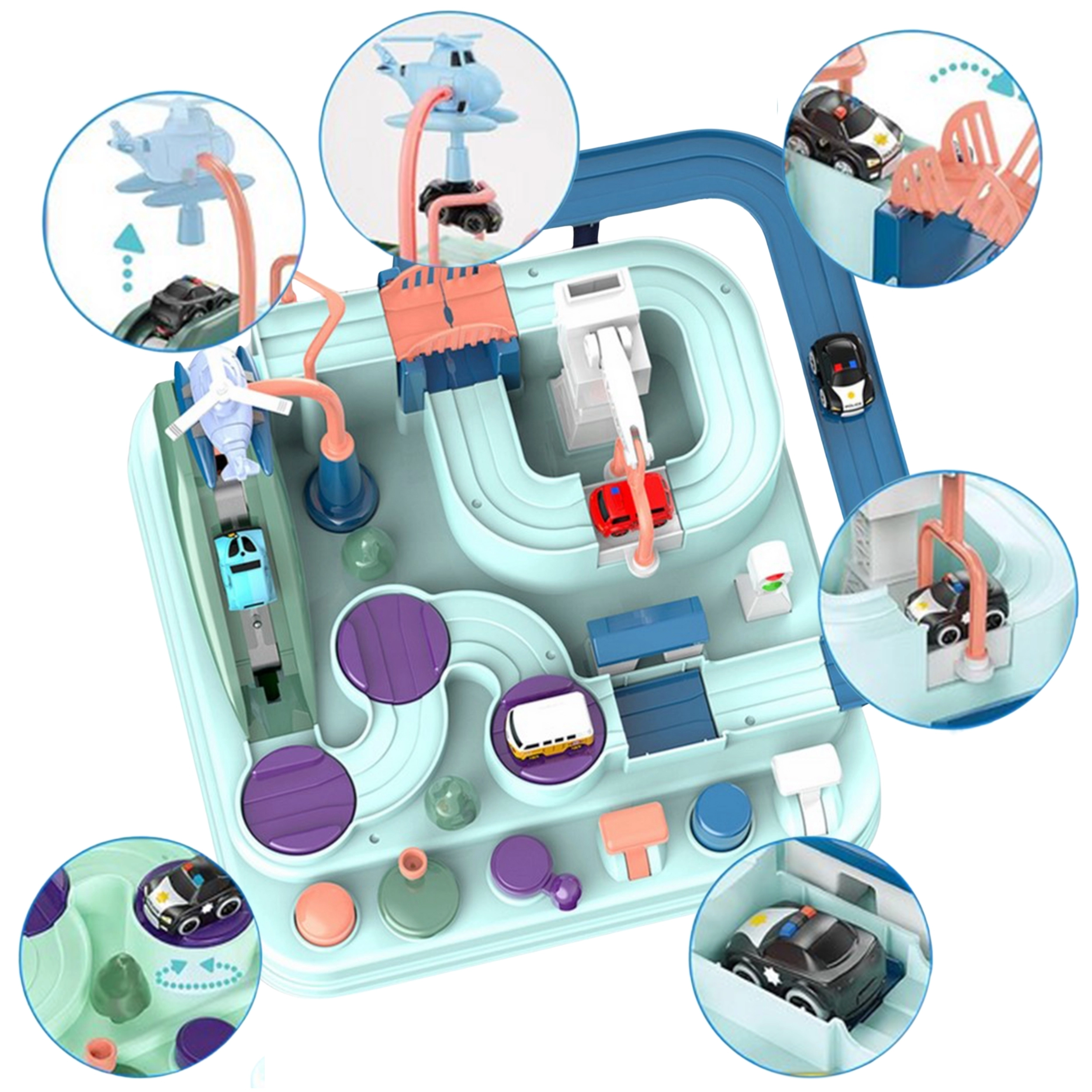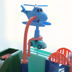 Rinkinyje yra trys maži automobiliai, kurie gali laisvai tyrinėti trasą pagal mažojo žaidėjo fantaziją. Transporto priemonės paįvairins žaidimą arba leis vaikams varžytis trasoje. Kelias per trasą gali pasirodyti paprastas, tačiau tokie elementai kaip pavarų mechanizmai ar pakeliami tiltai užtikrina, kad kelionė bus pilna adrenalino.