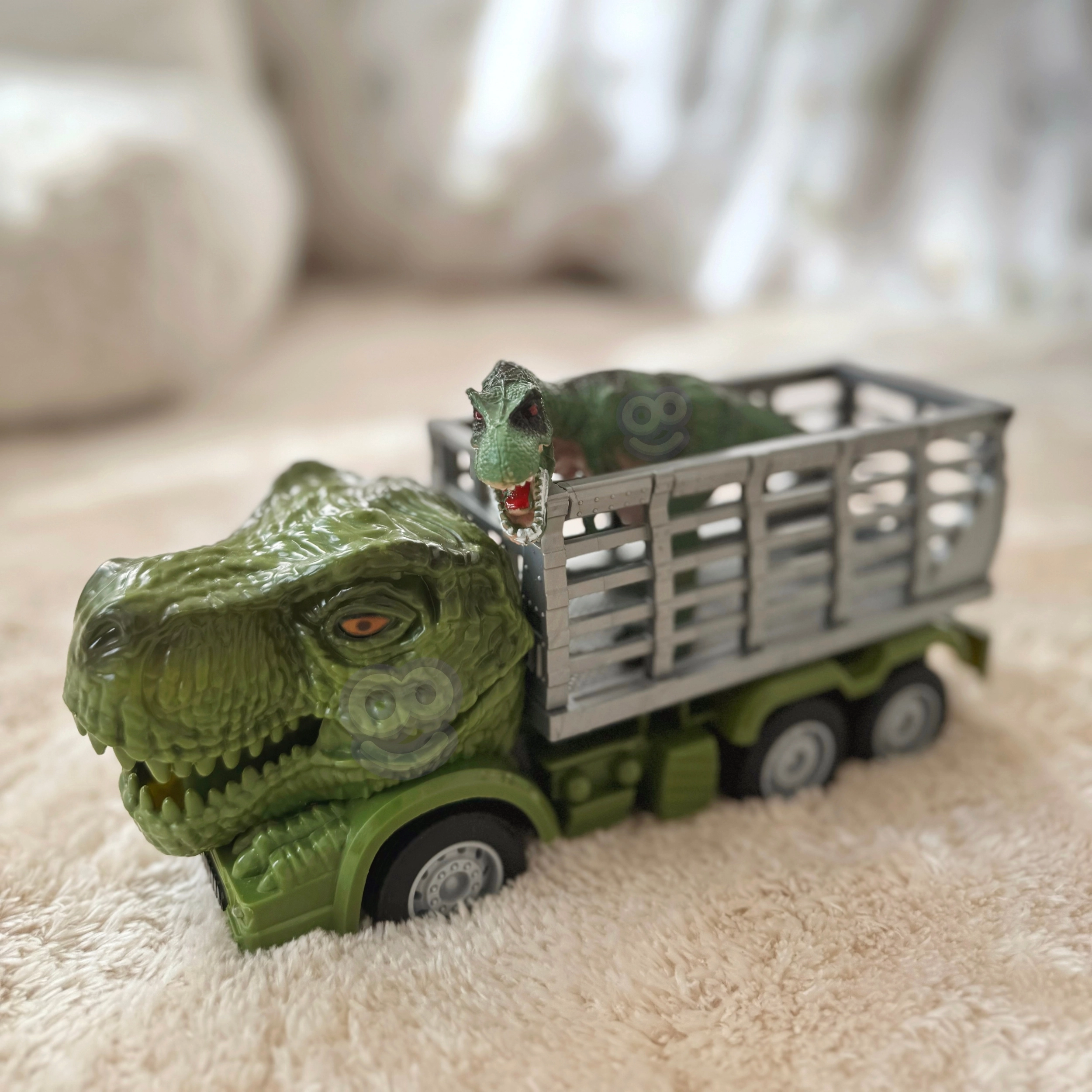 Dėl važiavimo pirmyn/atgal ir kairėn/dešinėn valdymas yra intuityvus ir smagus. Atidaromas dangtis/narvas leidžia pakrauti ir vežti pridėtą dinozauro figūrėlę – puikiai tinka kūrybingoms istorijoms. Žaidimas kartu lavina smulkiąją motoriką ir koordinaciją.